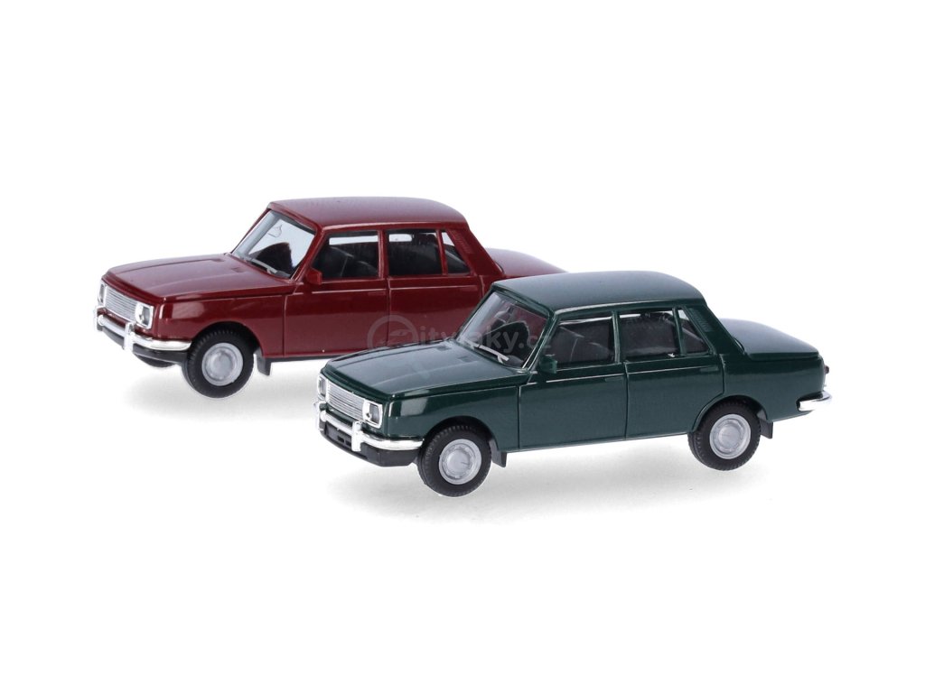 H0 - Mini kit 2 x Wartburg 353 '66, karmínově červená/atlantická zelená / Herpa 013918-002