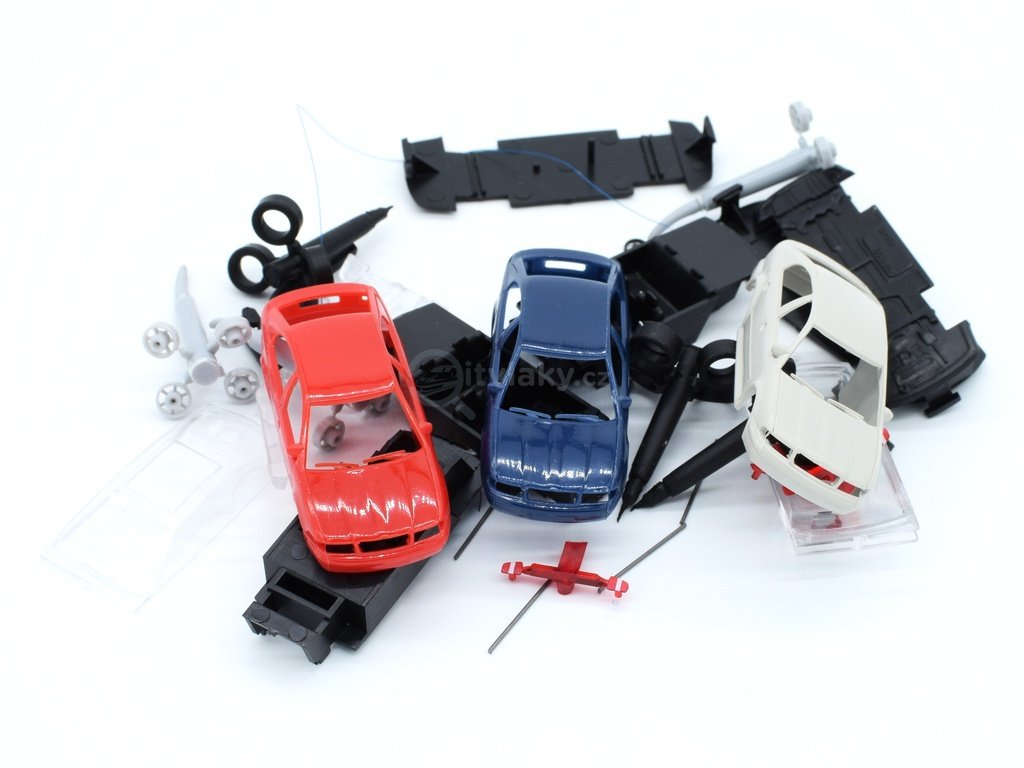 Balení obsahuje 3 ks Škoda Octavia - stavebnice, předtištěné a nalakované.