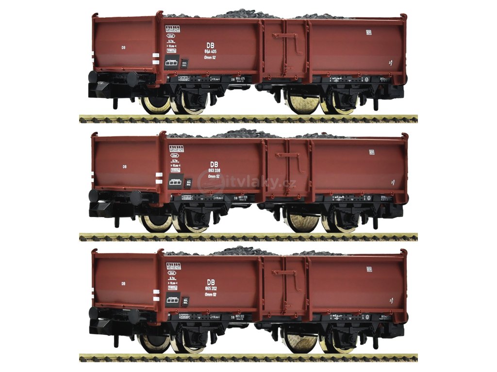 N - Set 3 otevřených vozů s uhlím Omm52, DB, nové čísla / Fleischmann 820530