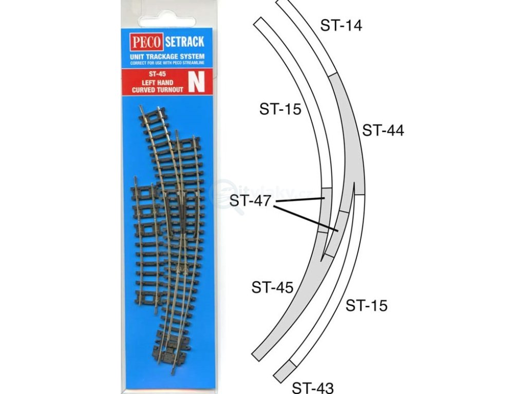 N - výhybka levá krátká oblouková CODE 80 / PECO ST-45