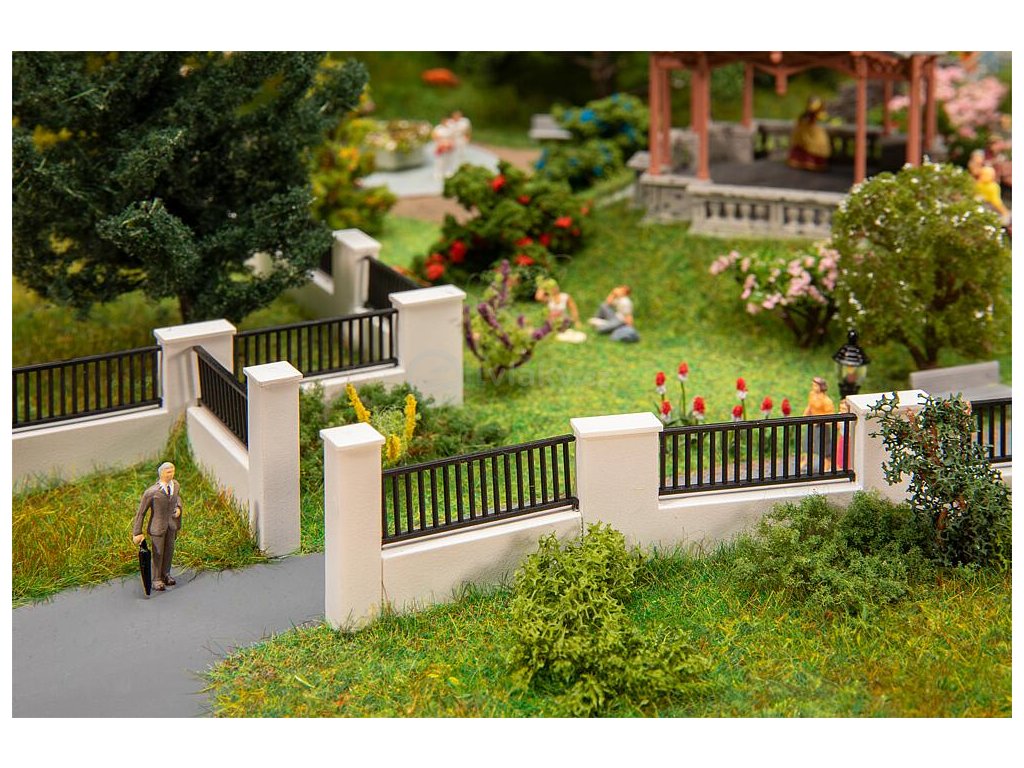 Můj dům je můj hrad. Ploty dávají pocit bezpečí a zprostředkovávají mír a bezpečí. Tyto ploty ve vzhledu zdi se železnými mřížemi jsou ideální pro oplocení kolem působivých starších městských vil a také pro vymezení továrních a vojenských areálů.Perličkou jsou stavebnice zábavních parků s mnoha atrakcemi a jezdící silniční vozidla k modelové železnici.