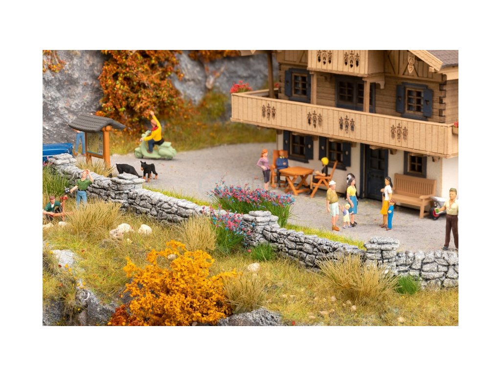 Stěny jsou vyrobeny z vysoce kvalitní strukturální tvrdé pěny NOCH, a proto se jeví jako velmi realistické. Další výhodou tuhé pěny NOCH je snadné další zpracování. Stěny jsou odděleny od nosné desky řezacím nožem a mohou být přilepeny přímo do modelové oblasti. Zbytky zdi lze použít pro uzavření zdi, cesty, stěny, opěrné zdi a další.