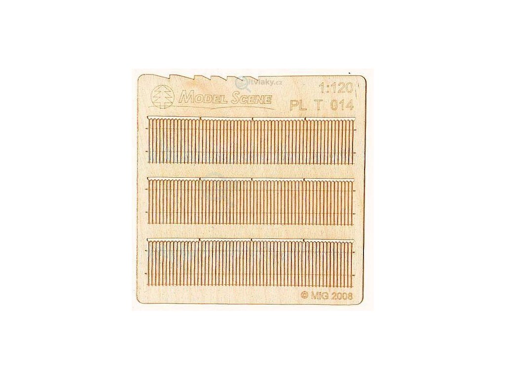 Prkenné ohrady a ploty jsou vyřezány laserem z dřevěné dýhy. Velikost TT, délka cca 235 mm, výška 16 mm