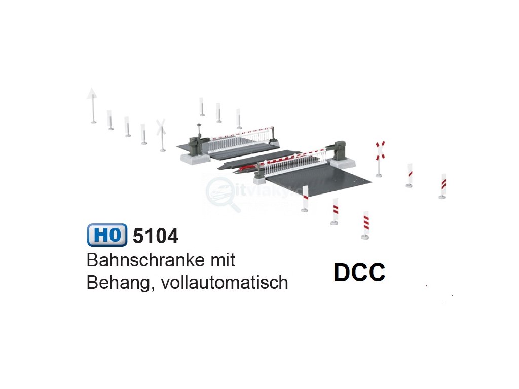 Automatické závory s příslušenstvím 63mm dlouhé. Dvě pohonné jednotky. Pomalý realistický chod závor. Pohonné jednotky jsou umístěny pod závorami. Sestavu doplňují dopravní značky. Závory jsou vybaveny digitálním dekodérem. Součástí dodávky je i kolejový přejezd, nájezdové rampy. Závory lze ovládat kontakty, digitálně, tlačítky nebo spínacími kolejemi. Lze ovládat analogově i digitálně. V ceně nejsou senzory pro snímání průjezdu vlaku.