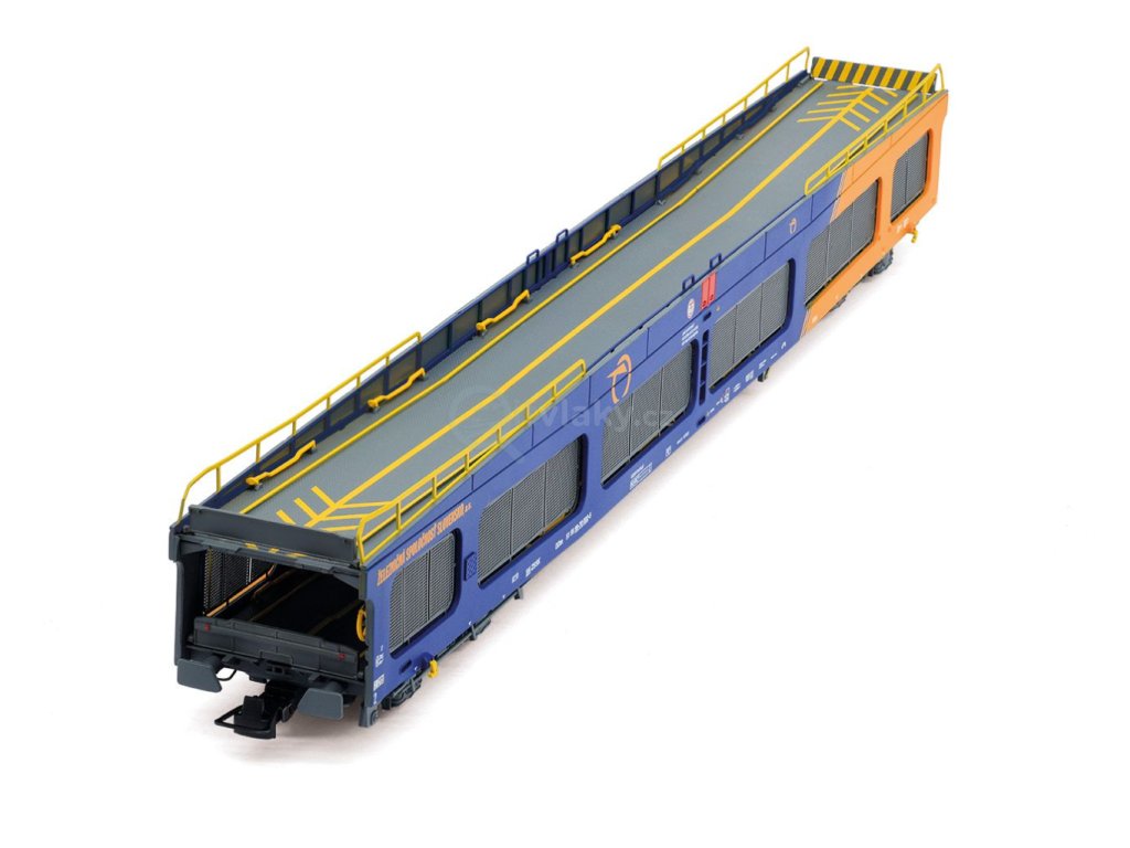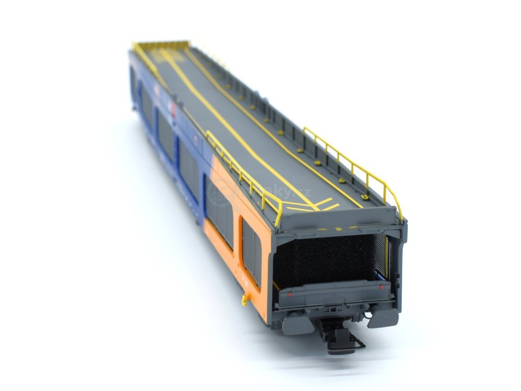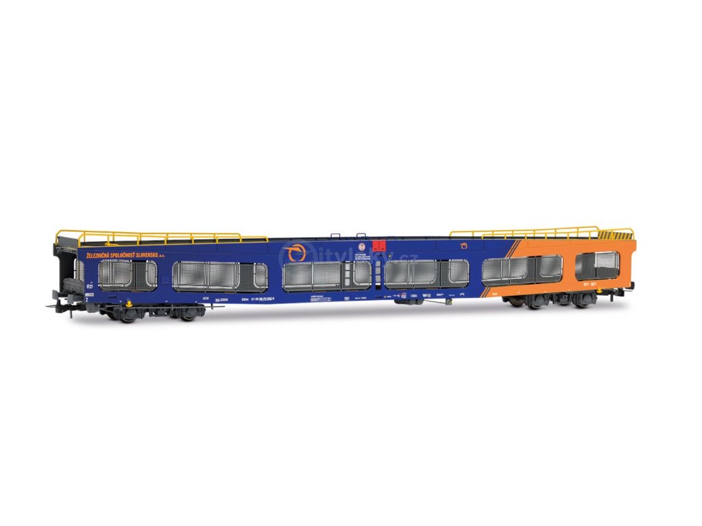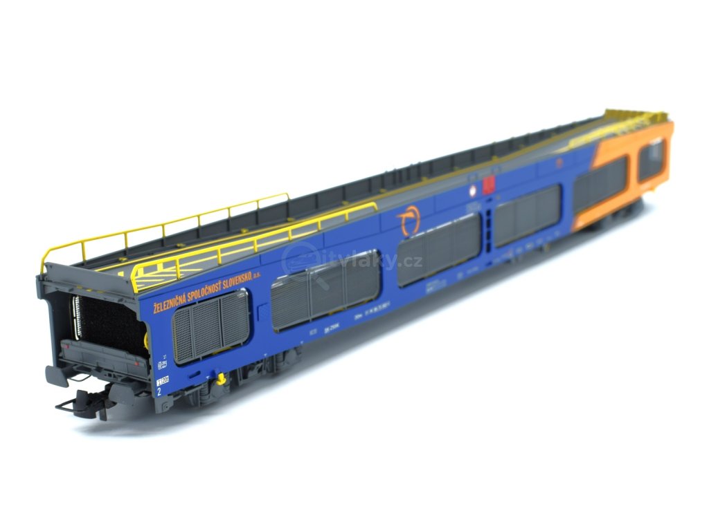 Model představuje moderní dvoupodlažní vůz řady DDm916, používaný Železničnou spoločnosťou Slovensko pro přepravu osobních automobilů v dálkové i mezinárodní dopravě. Vůz je typický svou modro‑oranžovou firemní grafikou ZSSK, ochrannými bočními mřížemi a otevřenou konstrukcí umožňující nakládku vozidel na obě podlaží. V reálném provozu se tyto vozy řadí do autovlaků například na linkách Slovensko–Česko či Slovensko–Německo.