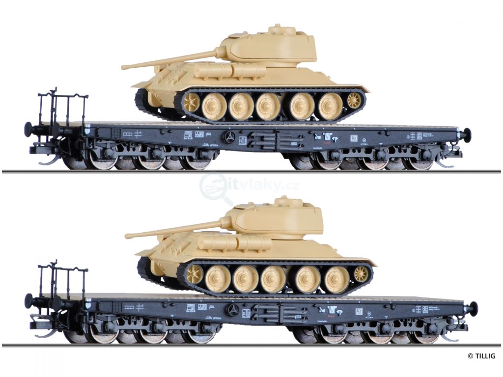ARCHIV TT - Set dvou plošinových vozů SSyms, ložené tanky T34/85, DR Ep. III / TILLIG 01801