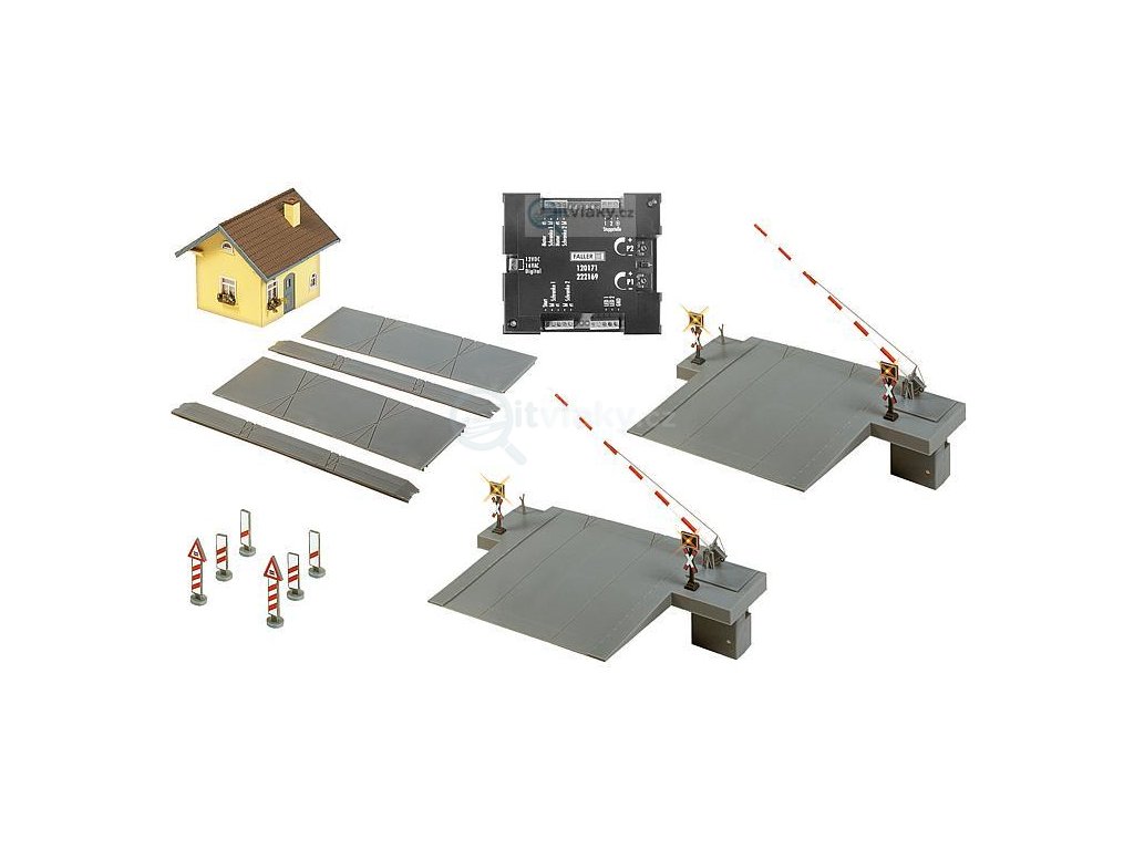 Tento mikroprocesorem řízený železniční přejezd je vybaven 4 blikajícími svatoondřejskými kříži, 2 průběžnými závorovými rameny a železniční budkou. Funkce je spouštěna senzorem, který lze ovládat i digitálně. Lze použít pro všechny typy kolejí a ve více kolejových soupravách. Lze použít i pro systém vozů pro pravostranný a levostranný provoz, 1 a 2 jízdní pruhy. Zastávkové body je nutné zakoupit samostatně. 12-16 V, přímé/střídavé napětí.