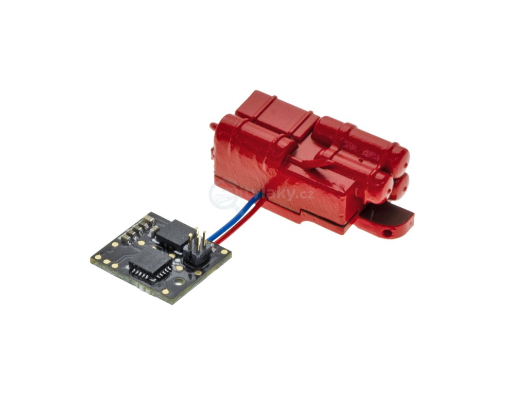 Enhance your CarMotion layout with in-vehicle sound effects. The retrofittable sound modules are vehicle-specific, ensuring they are mechanically, visually, and acoustically tailored to each model. These modules reproduce engine sounds for starting and stopping, as well as various driving-related sounds, such as gear changes, brake squeals, and depending on the vehicle type, even reverse warning signals. The horn, and if equipped, a siren, can also be activated. The engine sound volume is adjustable. The selectable and adjustable sounds can be controlled via remote control, DCC command, infrared command, or magnetic sequence. The circuit board of the sound module is easily connected to the vehicle‘s circuit board using a four-pin connector and secured with screws. The previous left-side components, such as the exhaust and air tanks, are replaced with the new components that house the speaker. Please note that vehicles without the four-pin expansion socket cannot be equipped with a sound module. Output power 250 mW, efficiency 81 dBA, frequency range approx. 800 – 10 kHz. Suitable items: 8019, 8152. L 22.5 x W 11.2 x H 9.3 mm