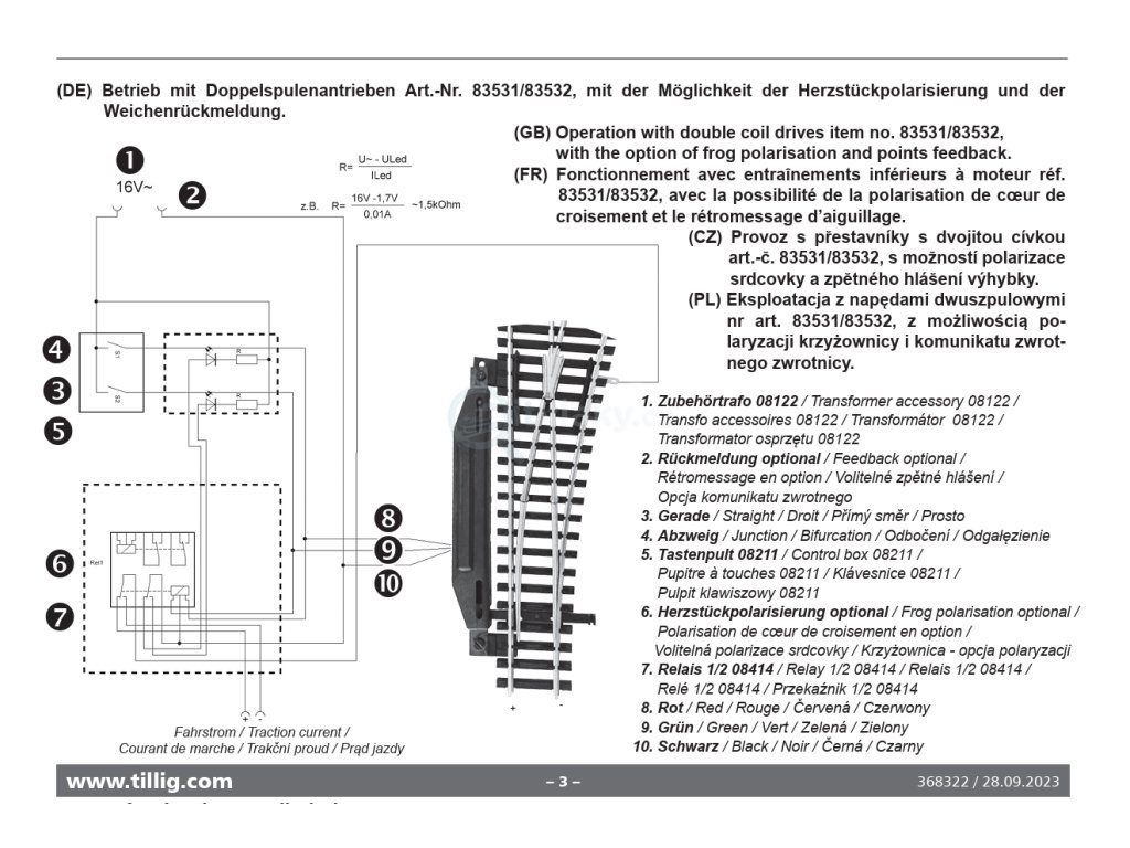 aby jste je neutrhly. K napájení použijte vhodný transformátor např. TILLIG 08122 . Přestavník spínejte krátkými impulsy, ne trvalým napětím.