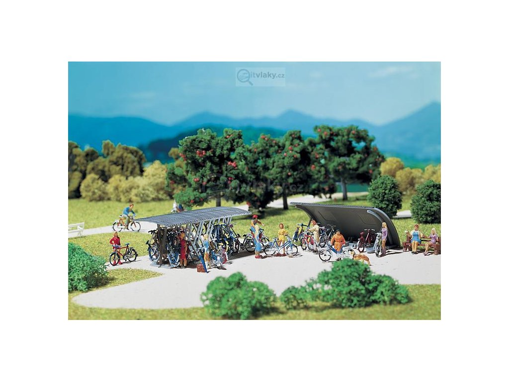 Dva stojany na kola s 16 jízdními koly jsou dekorativní detaily, které pravděpodobně na mnoha místech každého modelu ještě více umocňují realitu modelového světa.
