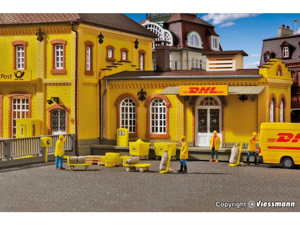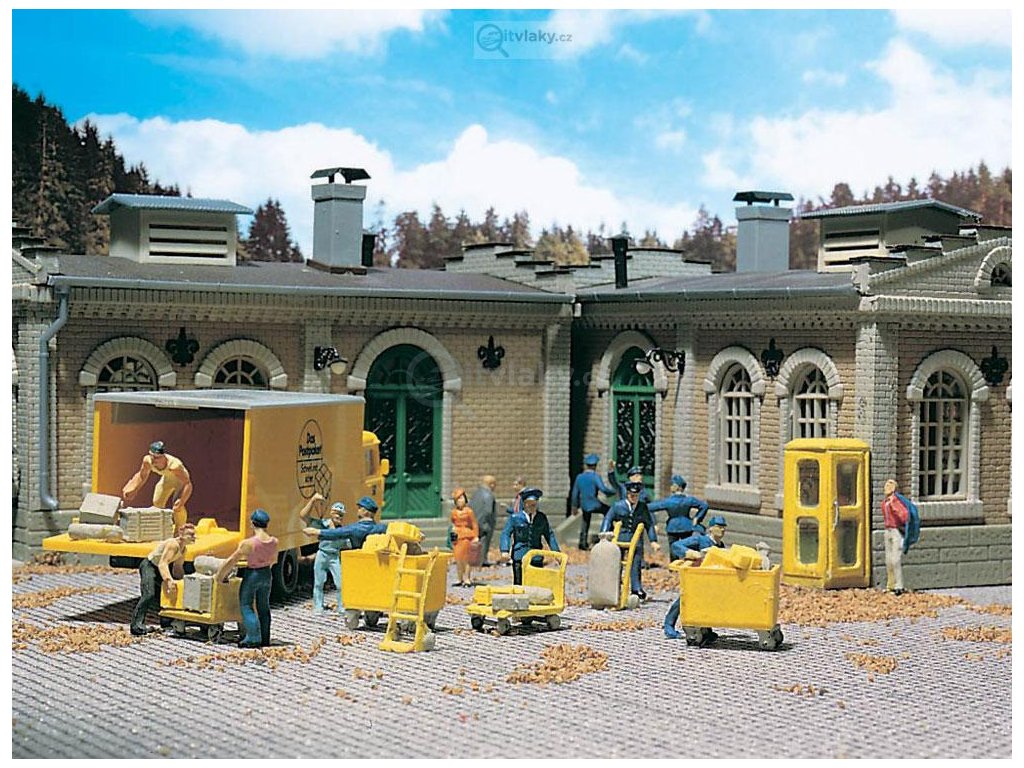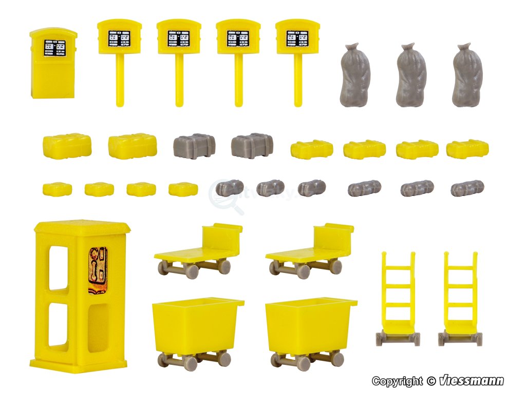 Sada se skládá z telefonní budky, 2 poštovních schránek a 4 vozíků na balíky.