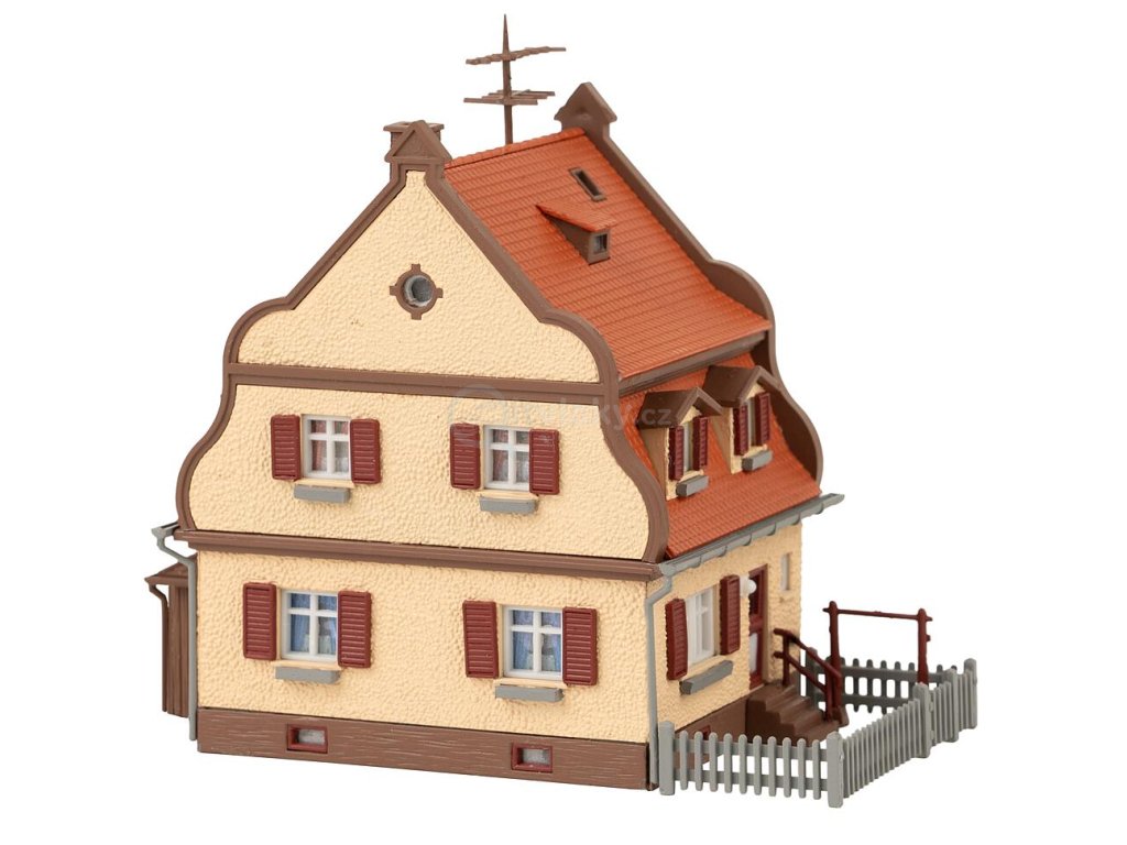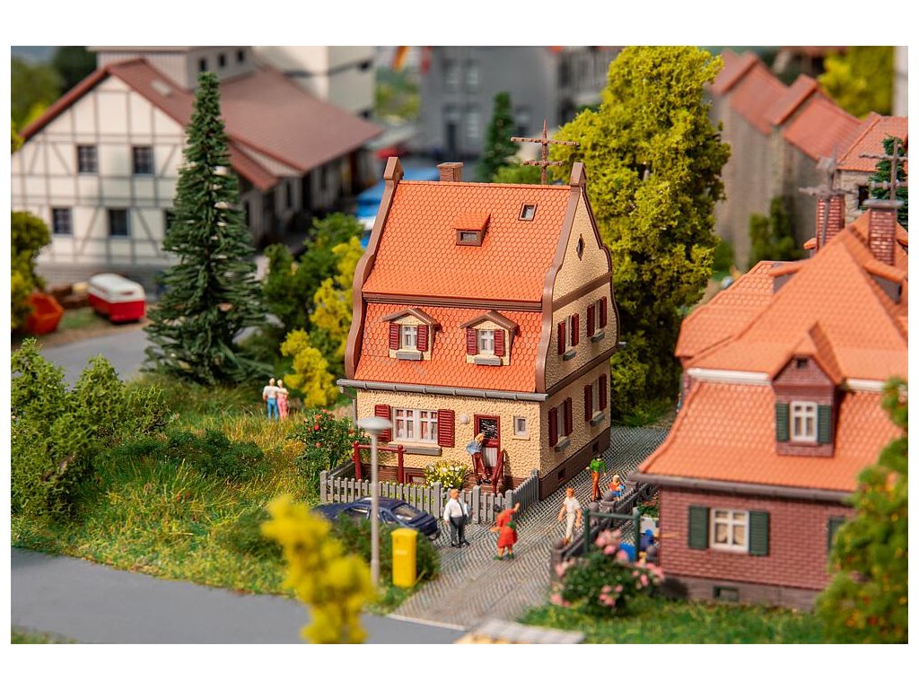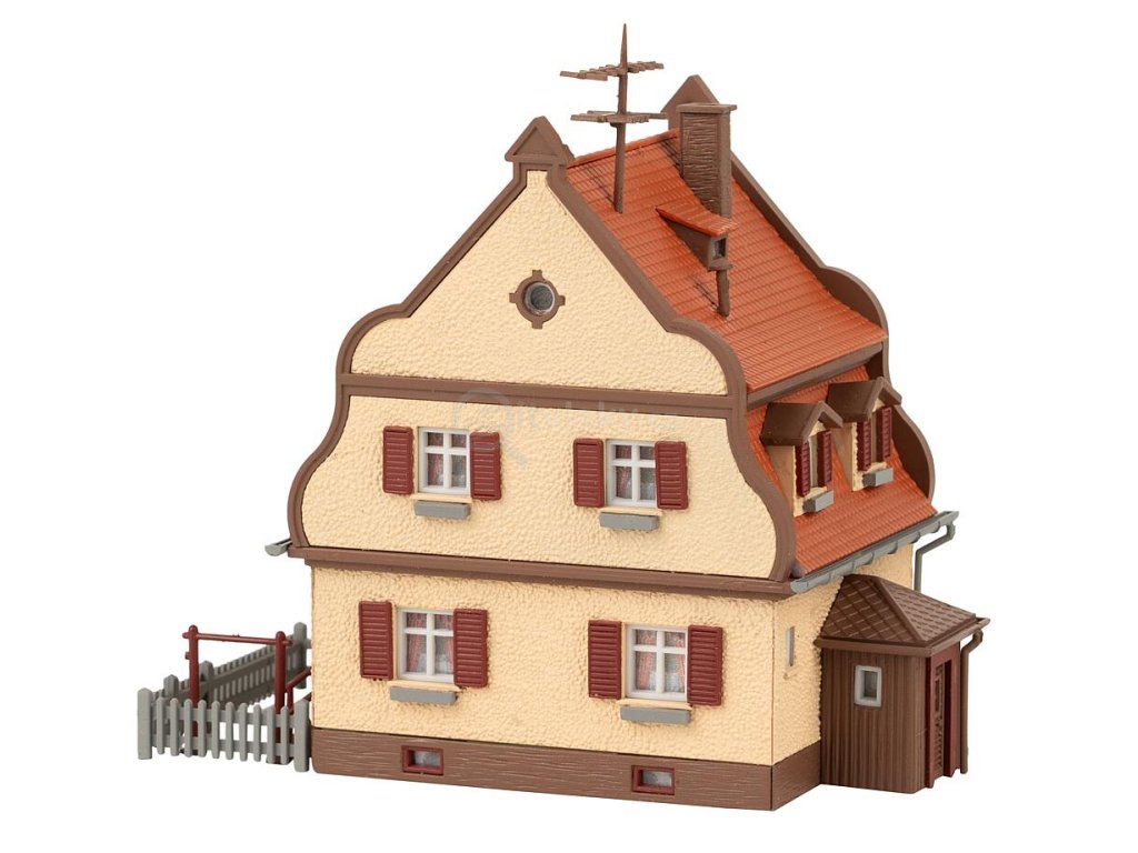 Malý dvoupatrový obytný dům z poválečné doby se starým anténním systémem, předzahrádkou s tepovačem koberců a malou dřevěnou přístavbou kůlny.Perličkou jsou stavebnice zábavních parků s mnoha atrakcemi a jezdící silniční vozidla k modelové železnici.