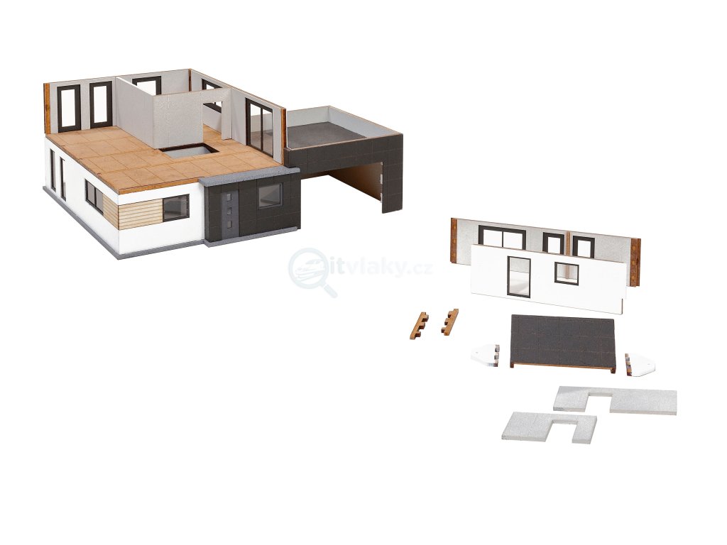 Stavebnice. Moderní montovaný dům ve výstavbě z kompozitního materiálu Polyplate. D 17,6 x š 14,6 x v 6,8 cm Úroveň obtížnosti: 2 (pokročilý)