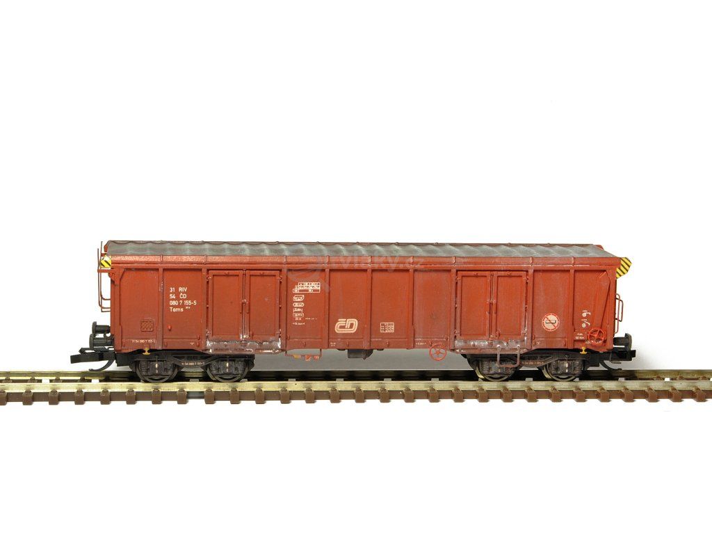Kompletní stavebnice vozu s odsuvnou střechou. Obsahuje plastikové výlisky na sestavení modelu včetně kinematik, spřáhel, kvalitních soustružených kovových dvojkolí, kovové lepty, závaží a obtisky s dvojicí provozních čísel. Provozovatel ČD/ČDC, V.-VI. epocha.