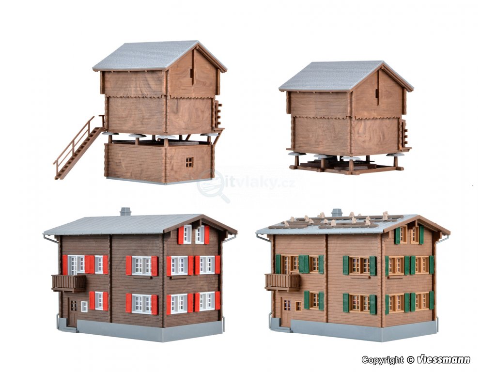 Stavebnice. Sada se skládá ze 2 domů, stáje a stodoly. K této sadě patří železniční stanice Davos-Monstein, položka 39493.