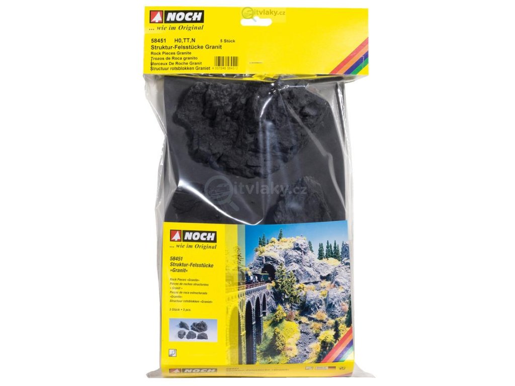 Díky skalním dílům ze strukturální tvrdé pěny se stavba impozantních hor a skalních stěn stává hračkou. Pro obzvláště exponované hory a skalní útvary jsou ideální skály NOCH "Granit". Z velkých kusů skály lze vytvářet vrcholy.