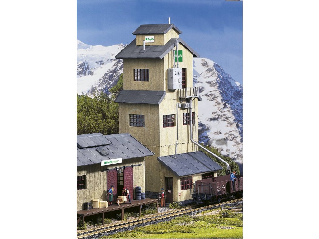 Venkovský skladový areál se kromě skladu vyznačuje především skladovací věží. Impozantní svou výškou se tyčí nad všemi ostatními budovami v okolí - jak lze nalézt na mnoha venkovských odbočkách. Model se svými trubkami a ventilačním systémem vytváří typickou atmosféru překladiště venkovského zboží. Na jedné straně impozantní budovy je malá kancelářská přístavba pro "papírování". Kromě samolepek "BayWa" sada obsahuje také samolepky pro navrhování budovy "Raiffeisen". Budovu lze postavit samostatně nebo společně se skladem č. 62034.