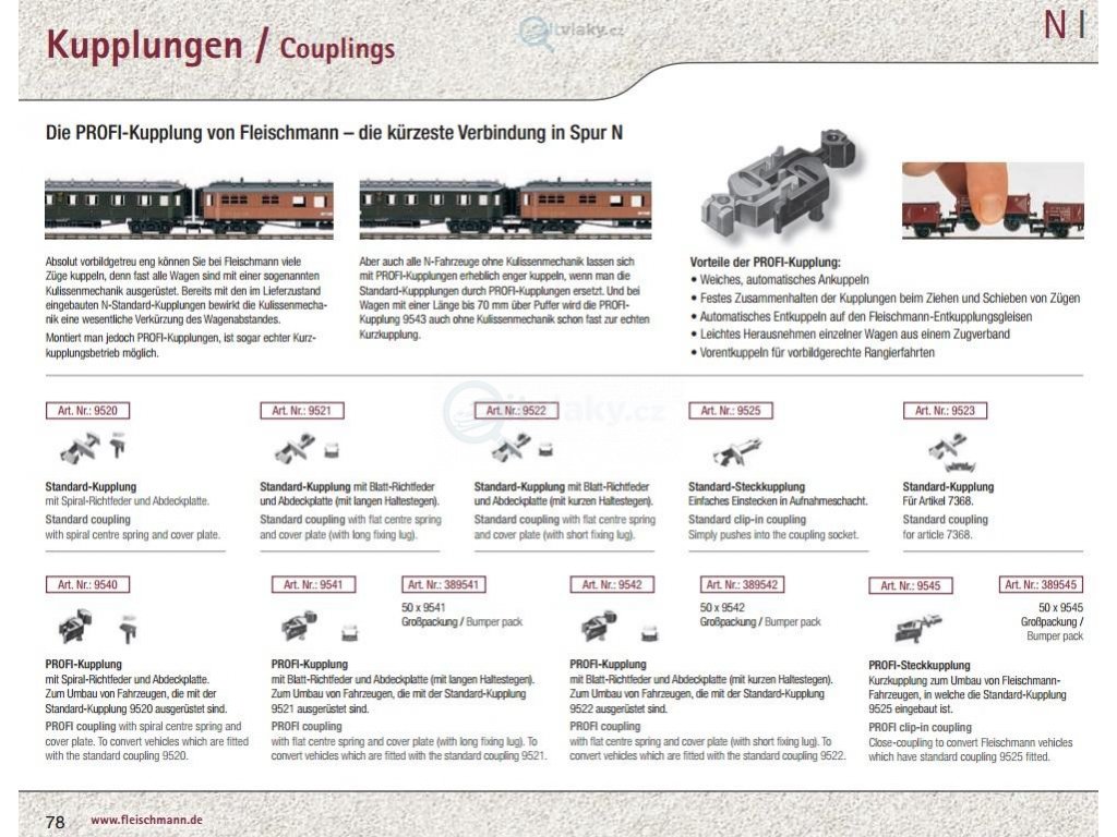 Spřáhla Fleischmann, která nemáme na e-shopu, ale jsou v katalogu ( viz přiložené obrázky, nebo katalog) lze objednat u nás mailem.