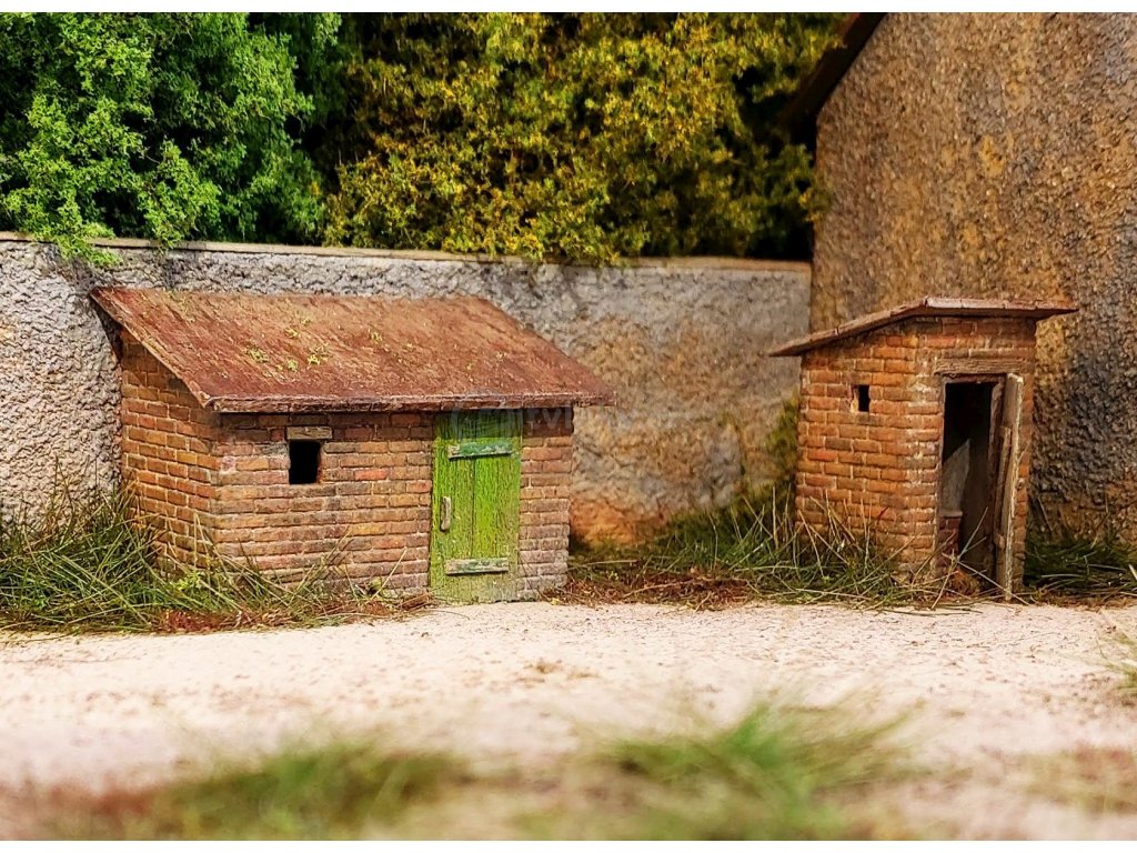 Stavebnice cihlové kadibudky a menší kůlny najde uplatnění především na venkovských či městských dvorcích, ale může být umístěna i v drážních prostorách. Vyrobeno technologií laser-cut z kartonu a dřeva, pomocí jemného gravírování je detailně vyznačena struktura cihel.