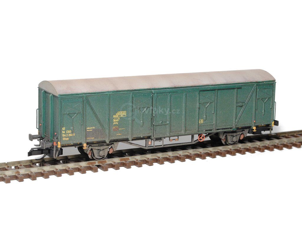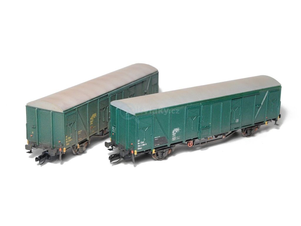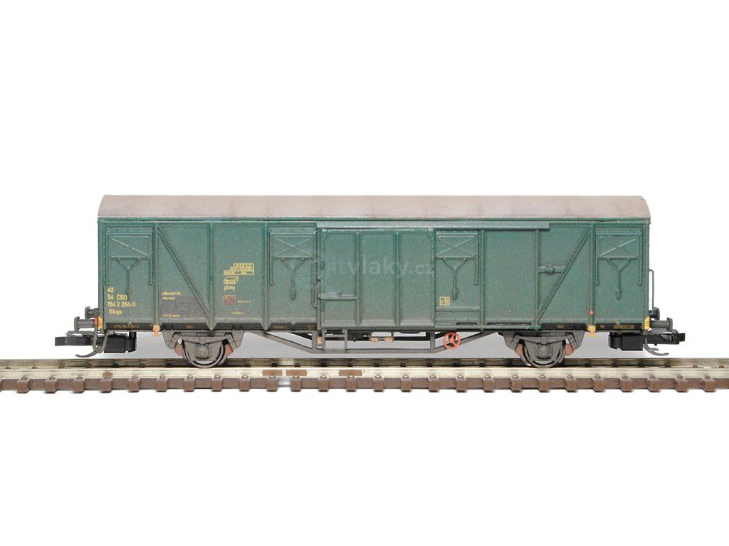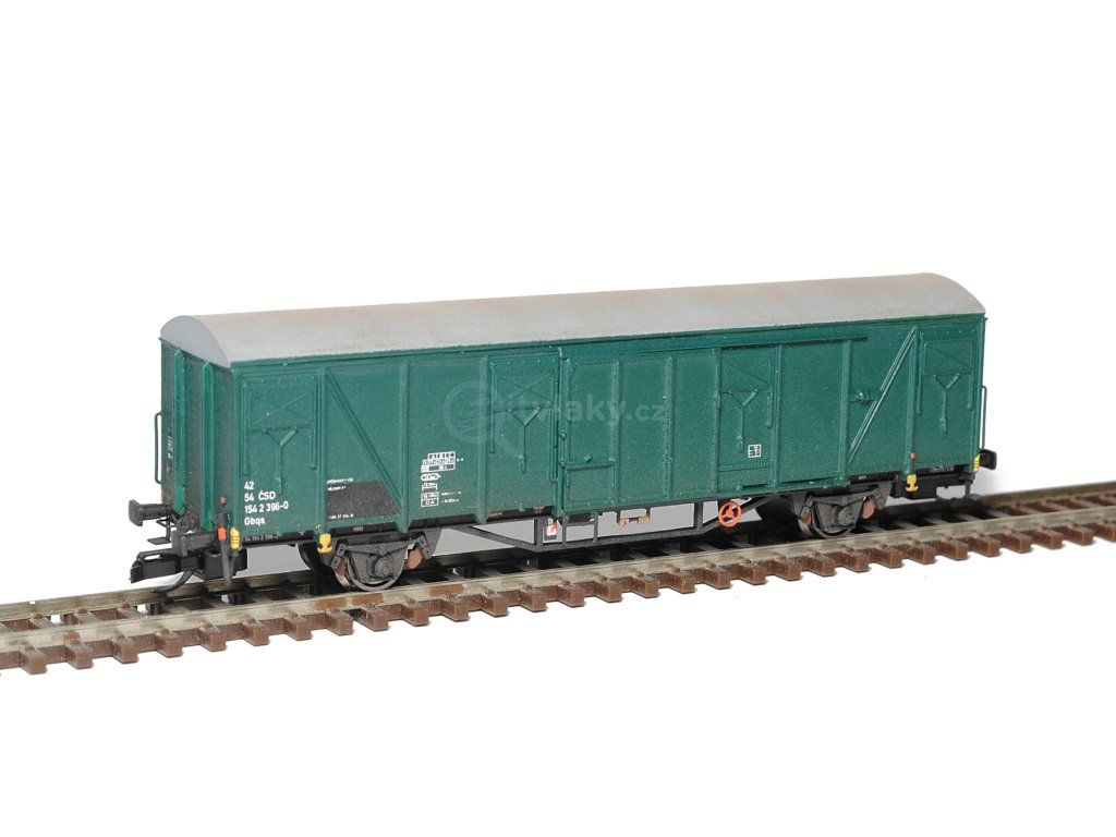 Kompletní stavebnice krytého spěšninového vozu vyráběného ve vagonce Česká Lípa. Obsahuje plastikové výlisky na sestavení modelu včetně kinematik, spřáhel, kvalitních soustružených kovových dvojkolí, kovové lepty a závaží. Dále je přiložen obtisk s popisy v bílé i žluté barvě s celkem čtyřmi provozními čísly. Provozovatel ČSD, IV. epocha.