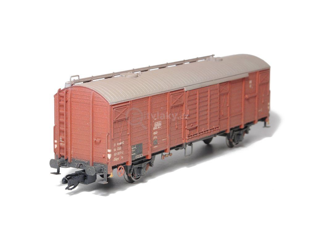 ompletní stavebnice krytého vozu vyráběného ve vagonce Konstal Chorzów. Přiloženy jsou dvě sady vrat na výběr (původní provedení a stav po opravě). Obsahuje plastikové výlisky na sestavení modelu včetně kinematik, spřáhel, kvalitních soustružených kovových dvojkolí, kovové lepty, závaží a obtisky s čtveřicí provozních čísel. Provozovatel Československé dráhy, IV. epocha.
