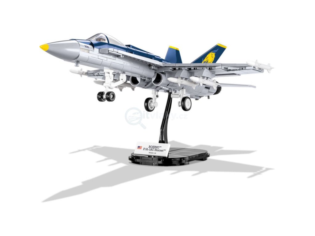 Boeing F/A-18C Hornet™ je americký nadzvukový víceúčelový letoun US Navy, který se vyrábí od roku 1978. Je to jeden z nejmodernějších letounů amerického námořnictva. Letouny F/A-18 byly poprvé v boji použity v roce 1986 při náletu na Libyi. Příležitostí pro širší bojové využití Hornetů byla operace Pouštní bouře v Iráku v roce 1991. Náš model je vybaven skládacím podvozkem a otočnými koly. Pod křídly najdete velký arzenál zbraní. Do kabiny můžete umístit speciální kostku - půlfigurku pilota. Model je v měřítku 1:48 a sestavený měří 36 x 30 x 11 cm. Balení obsahuje 538 kostek stavebnice.