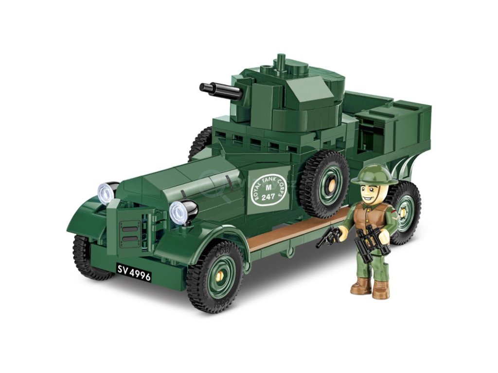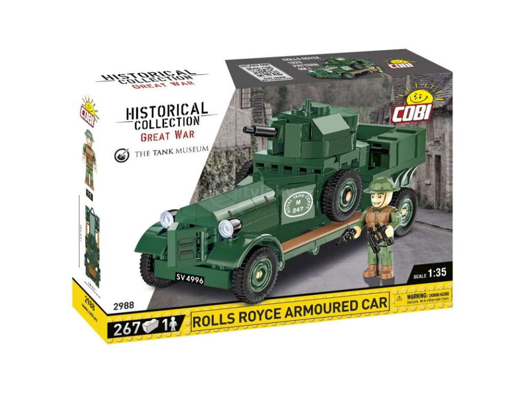Je více než 100 let staré a je nejstarším funkčním vozidlem v Muzeu tanků v Bovingtonu. Obrněný vůz Rolls Royce byl vyroben v roce 1920. Exeplář, který se dnes v muzeu nachází, bojoval v Irsku, Šanghaji a Egyptě, než se vrátil do Anglie, aby hlídkoval na pobřeží Norfolku během 2. světové války. Do muzejní sbírky byl zařazen v roce 1947 a stal se mimořádně významným exponátem. V roce 1997 byla jeho pasažérkou královna Alžběta II. Postavte si Rolls Royce obrněný vůz v měřítku 1:35. Balení obsahuje 267 kostek stavebnice a figurku vojáka.