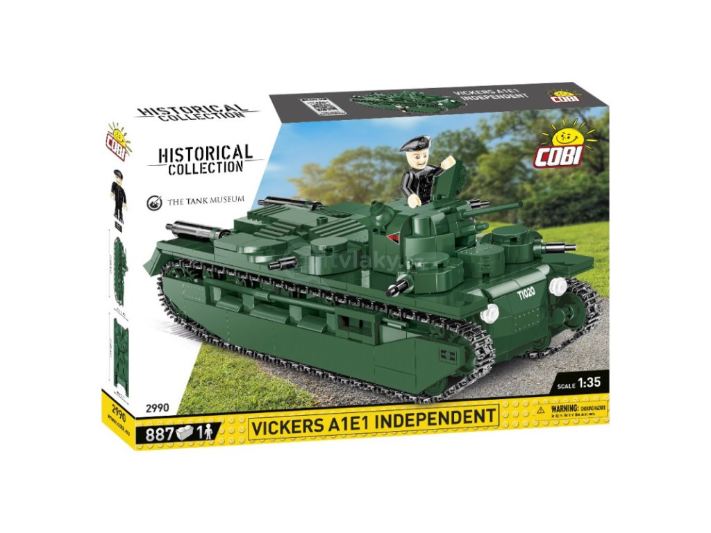 Postavte si model Vickers A1E1 INDEPENDENT, což byl britský prototyp těžkého tanku z meziválečného období. Vyroben by lpouze jeden kus, která je díky náležité péči hvězdou v The Tank Museum ve Velké Británii. Balení obsahuje 887 kostek stavebnice a 1 figurku vojáka.