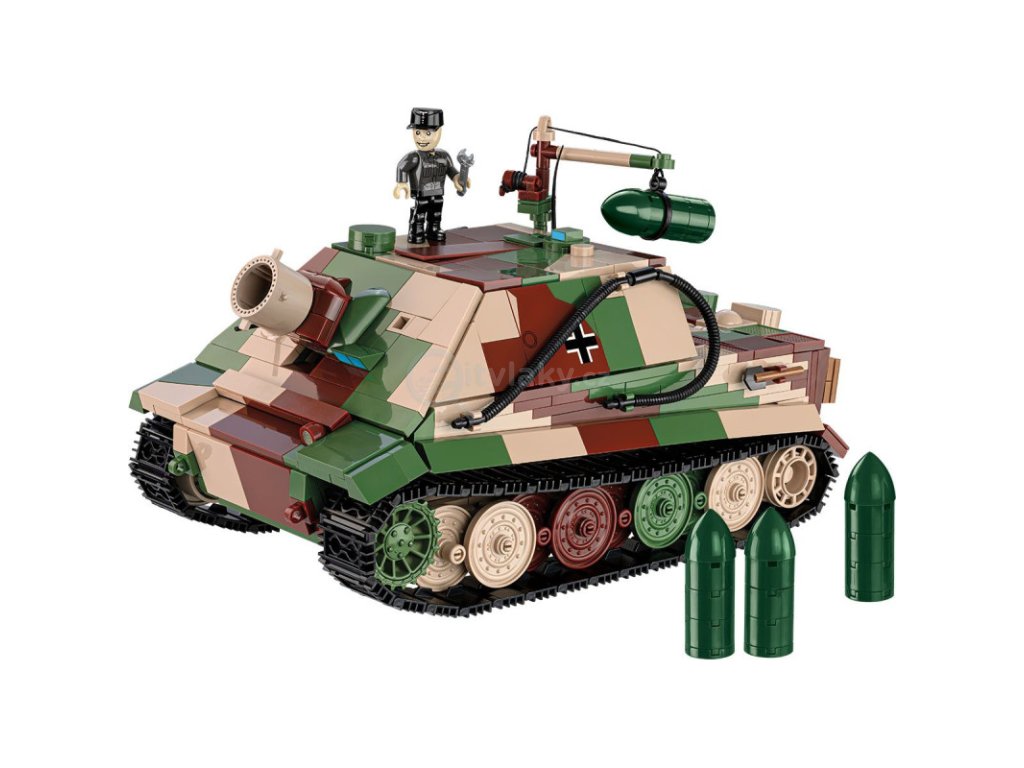 Postavte si model Sturmtiger německé pancéřové dělo z druhé světové války postavené na podvozku tanku PzKpfw VI Tiger, vyzbrojené speciálním 38cm raketovým minometem (SturmMörser), který vrhá obrovské projektily na vzdálenost 5600 metrů. Sturmtiger byl navržen jako podpůrné vozidlo pěchoty během pouličních bojů. V letech 1943-1945 bylo postaveno pouze 18 exemplářů tohoto těžkého a komplikovaného zařízení. Balení obsahuje 1100 kostek a 1 figurku.