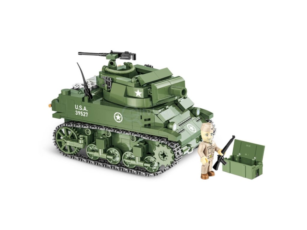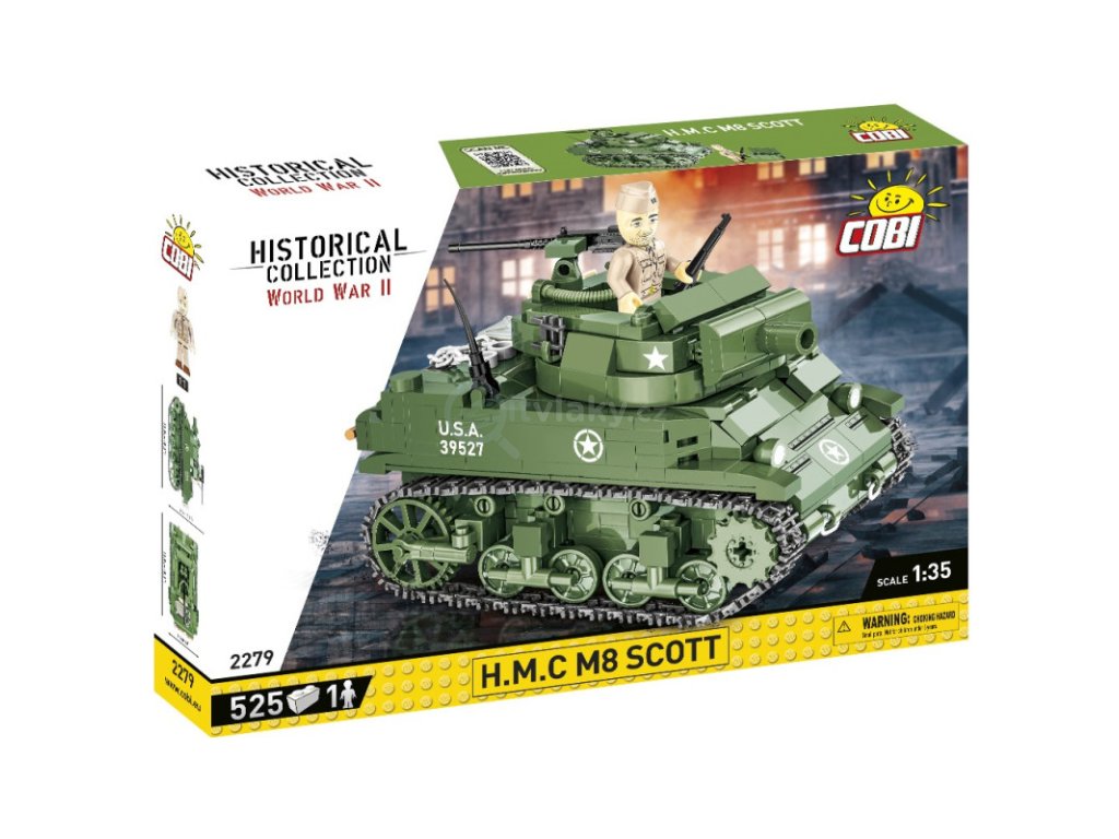 Postavte model M8 Scott, samohybné houfnice z 2. světové války, založené na podvozku lehkého tanku Stuart. Někdy se používal název M8 Generál Scott. Vozidlo bylo vyzbrojeno 75mm houfnicí umístěnou v otevřené věži. Svařovaný pancíř měl chránit posádku. Od září 1942 do ledna 1944 bylo vyrobeno přibližně 1 778 vozidel tohoto typu. Balení obsahuje 525 kostek stavebnice a 1 figurku vojáka.