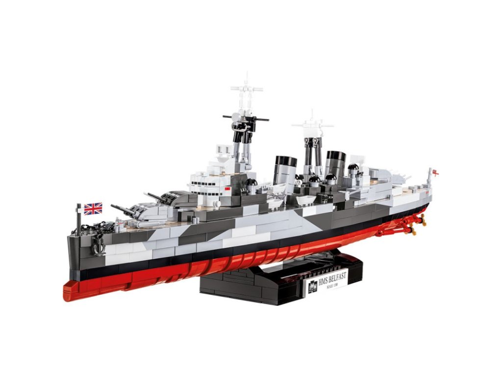 Postavte si model lodi HMS Belfast (C35) v měřítku 1:300. Byl to lehký křižník podtřídy Edinburgh třídy Town britského válečného námořnictva – Royal Navy. Byl nejtěžším britským lehkým křižníkem, který se zapojil do bojů 2. světové války. V současné době je zakotven na řece Temži poblíž Tower Bridge a slouží jako muzeum, které spravuje Imperial War Museum. Balení obsahuje 1 515 kostek stavebnice. Neobsahuje figurky. Veškerá grafika je natištěna přímo na kostkách stavebnice stálobarevným tiskem, model neobsahuje žádné samolepky.