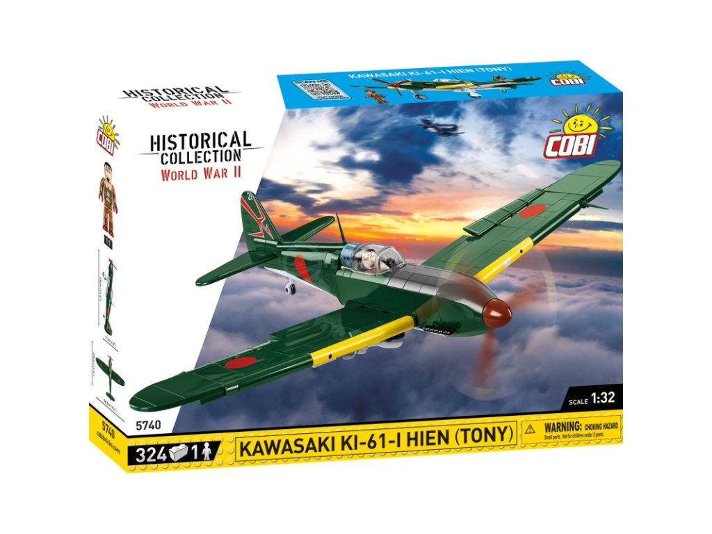 Postavte si model japonského letounu Kawasaki KI-61 (japonsky "létající vlaštovka"). z 2. světové války. Zpočátku měli Američané podezření, že letadlo je kopií italského designu a dali mu přezdívku „Tony“ naznačující italské kořeny. Oficiální japonský název je Army Fighter Model 3. Vyrobeno jich bylo více než 3000 kusů. Poprvé se s ním setkali američtí letci nad přístavem v Jokohamě při náletu na Doolittle 18. dubna 1942. Náš model je v měřítku 1:32. Balení obsahuje 350 kostek stavebnice a figurku pilota.