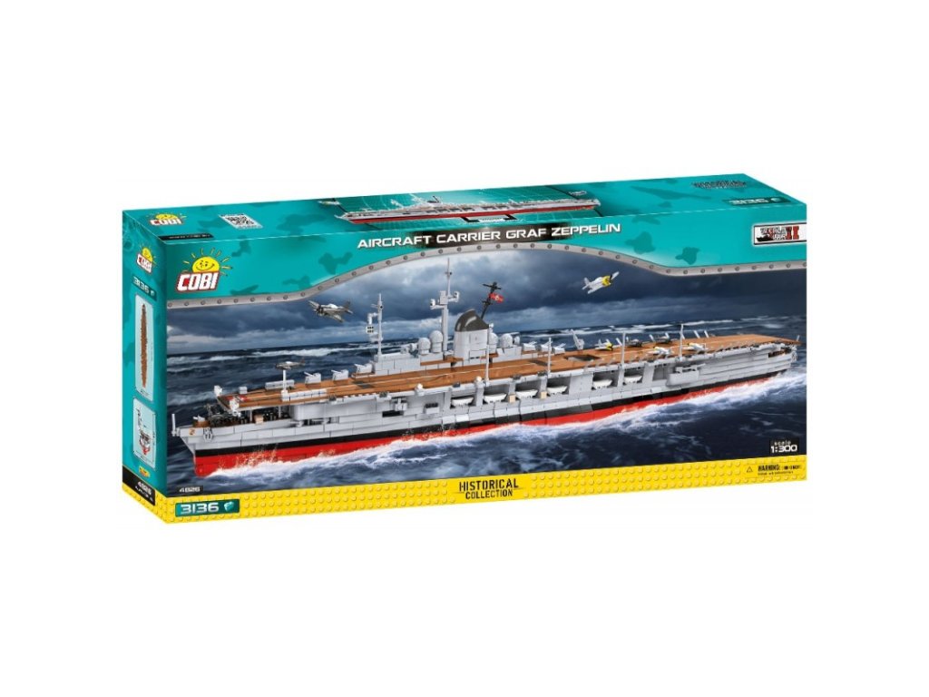 Legendární nedokončená letadlová loď Třetí říše z 2. světové války, jediná v historii Německa! Nově navržená nástavba, vylepšená barva paluby, funkční výtah, nové nadekorování letadel, stojan na vystavení a deska s názvem lodi jsou hlavními přednostmi této sady. Letadlová loď, kterou postavíte z 3135 kostek stavebnice, měří na délku 89,5 cm. Stejně jako ostatní lodě byl i tento model navržen v měřítku 1:300.