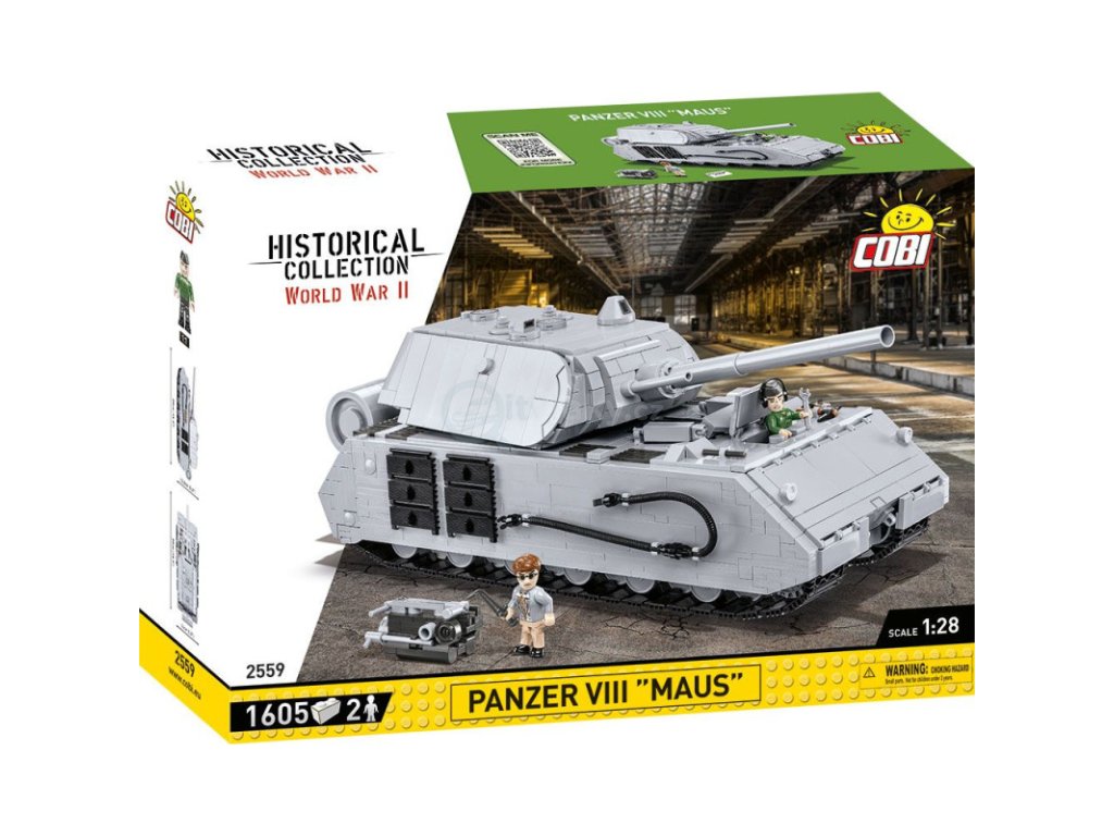 Asi neexistuje jiný tank, který by vzbuzoval tolik zvědavosti a o kterém kolují legendy, kterých v průběhu let přibývá. Panzerkampfwagen VIII MAUS byl prototyp německého supertěžkého tanku z 2. světové války. Byl to nejtěžší a největší tank, jaký byl kdy postaven. Vážil asi 188 tun! Projekt byl realizován v letech 1942 - 1944. Byly postaveny pouze dva neúplné prototypy a nikdy nebyly zařazeny do služby. V dubnu 1945 zajala Rudá armáda oba opuštěné prototypy Maus, které se nacházely na cvičišti Kummersdorf. Z nich byl postaveno vozidlo s trupem z prvního prototypu a věží z druhého. Tento hybrid je dodnes jednou z hlavních atrakcí Tankového muzea v Kubince u Moskvy. Model je v měřítku 1:28. Sestavený model měří 39 x 14 x 13 cm. Balení obsahuje 1 605 kostek stavebnice a 2 figurky svářeče a mechanika.