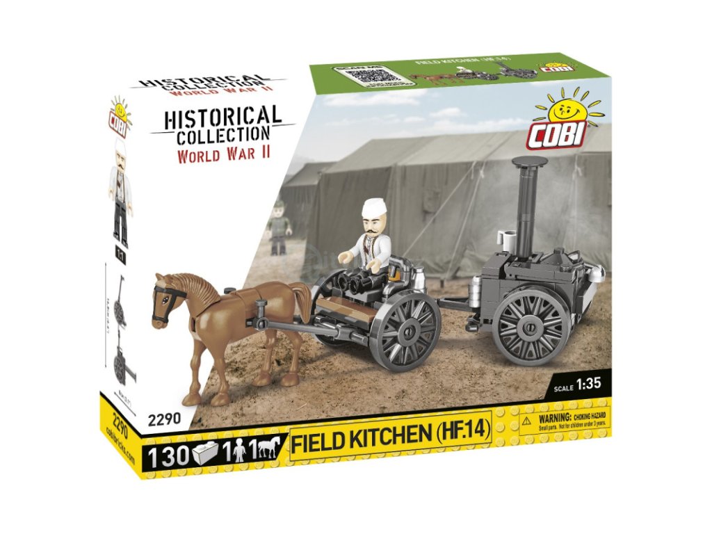 Postavte si model německé polní kuchyně s koňským povozem. Sada obsahuje také figurku kuchaře z té doby a doplňky: naběračka, hrnek, bandaska, láhev, houska). Polní kuchyni lze oddělit od vozíku s koněm. Sada by měla zajímat především lidi, kteří své dobrodružství se stavebnicemi COBI teprve začínají, a všechny sběratele série Historical Collection a stavitele diorama! Konstrukce je také ideálním základem pro stavbu koňských povozů s dělostřelectvem. O tento set by se měli zajímat i nadšenci do kolekce GREAT WAR. Téměř totožné polní kuchyně se používaly během Velké války a přiložená figurka s potiskem na zadní straně je velmi univerzální!