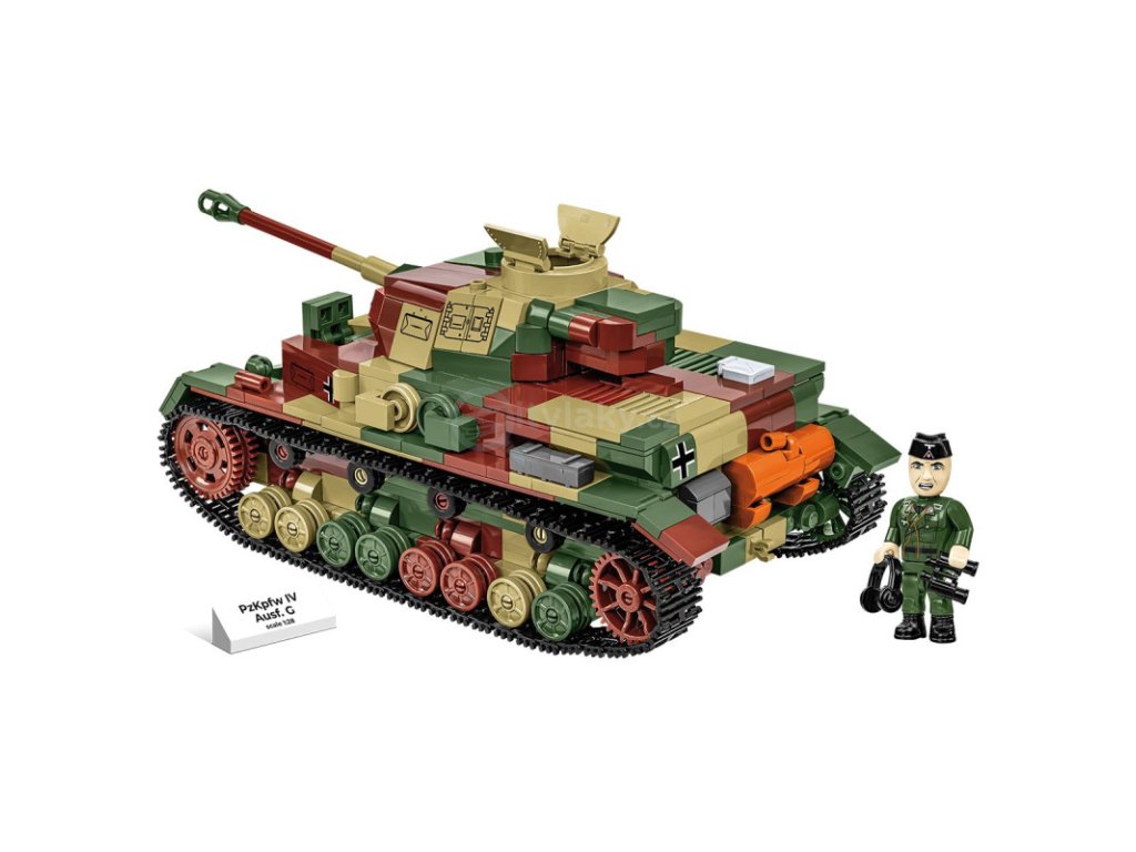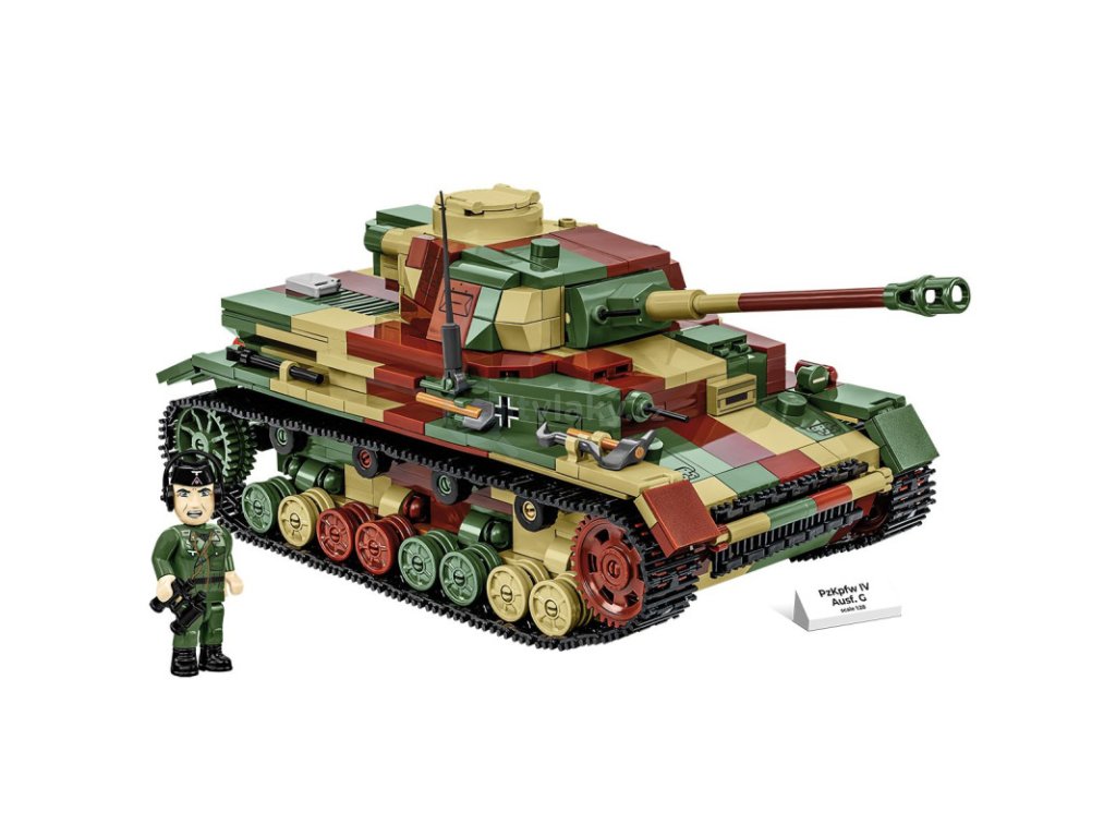 Postavte si model tanku Panzerkampfwagen IV, byl jedním z nejdůležitějších německých tanků během druhé světové války. Byl vyvinut ve 30. letech 20. století firmou Krupp a do služby vstoupil v roce 1939. Podle verze vážil asi 25 tun, měl 75mm dělo a obsluhovala ho pětičlenná posádka. Rychle se stala páteří německých obrněných sil. Díky neustálým úpravám a vylepšování byl schopen čelit výzvám, které představovaly spojenecké tanky a protitankové zbraně. Jeho produkce činila přes 8 000 kusů, čímž se stal jedním z nejčastěji vyráběných německých tanků během války. Panzer IV byl použit na všech frontách války, od invaze do Polska v roce 1939, přes francouzské tažení, boje na východní frontě, až po tažení v severní Africe a na západní frontě. Jeho všestrannost a přizpůsobivost různým bojovým podmínkám z něj udělala jeden z nejcennějších tanků ve výzbroji Wehrmachtu. Balení obsahuje 1107 kostek a 1 figurku.