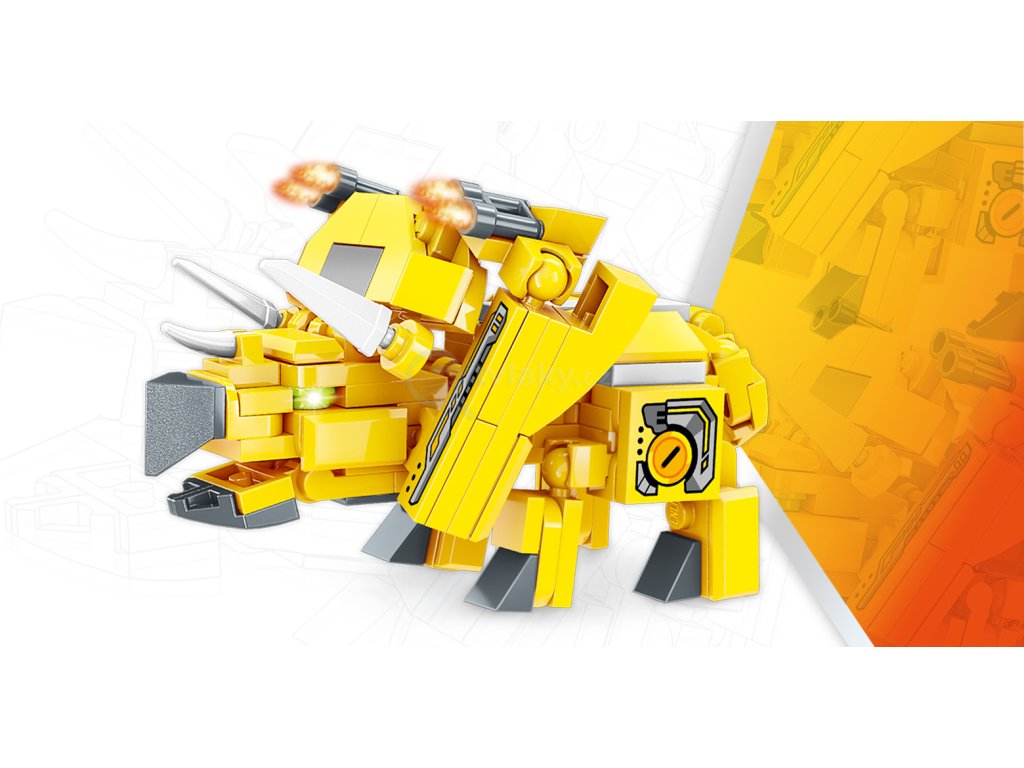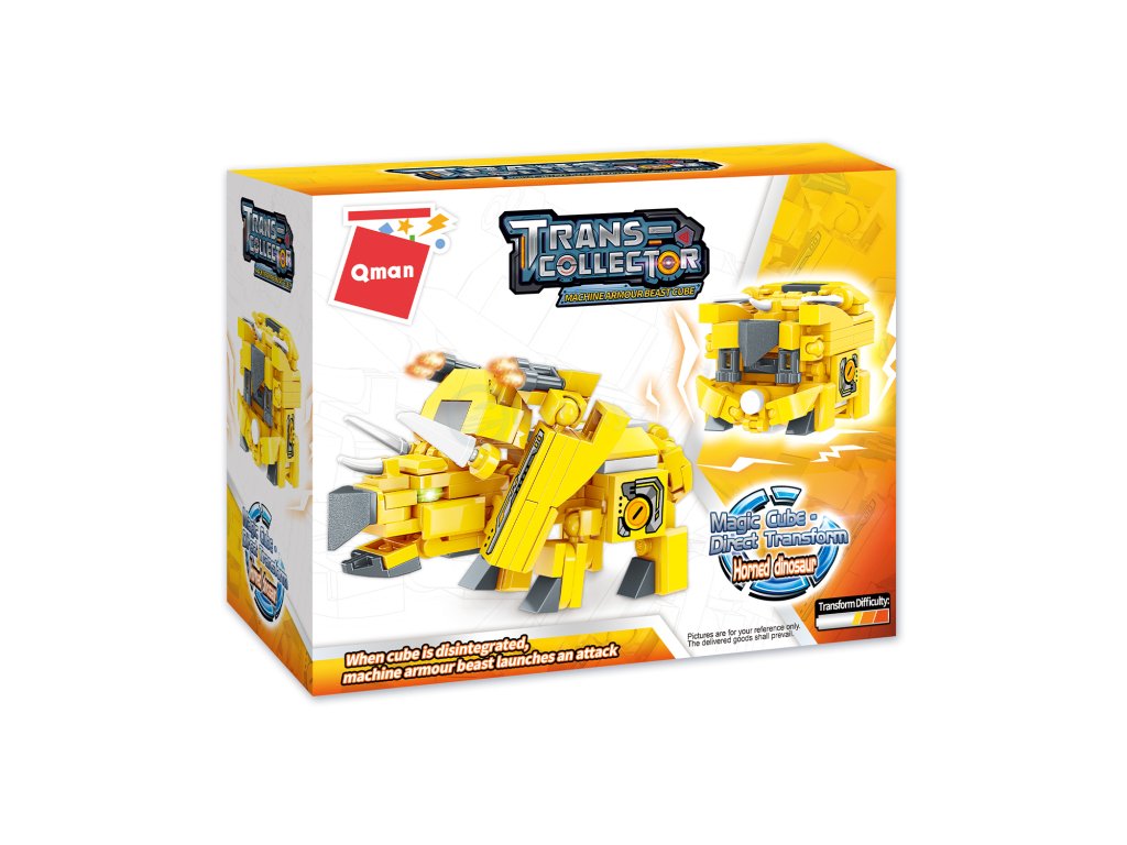 Když se kostka rozloží, obrněný zvířecí stroj zaujme útočný postoj. Stavebnice akční figury robotického dinosaura. Vysoce variabilní stavebnice Qman z pestrobarevných plastových kostiček lze kombinovat s podobnými stavebnicemi mnoha dalších významných výrobců. Vyrobeno z kvalitního, nezávadného a odolného, ABS plastu. Baleno v pestře potištěné papírové krabičce.