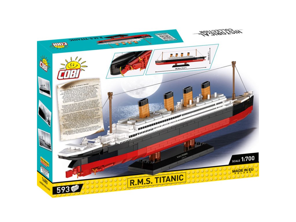Postavte si model R.M.S Titanic je nejen neuvěřitelná cesta zpět v čase, ale také skvělá příležitost zažít historii moderním způsobem. Během své první plavby, v noci ze 14. na 15. dubna 1912, se Titanic stal symbolem tragické námořní katastrofy, která dodnes vzbuzuje silné emoce. Tento model vzdává hold této legendární transatlantické lodi, která byla 268,99 metrů dlouhá a 29,41 metrů široká a měla na palubě 2 228 lidí. Balení obsahuje 593 kostek.