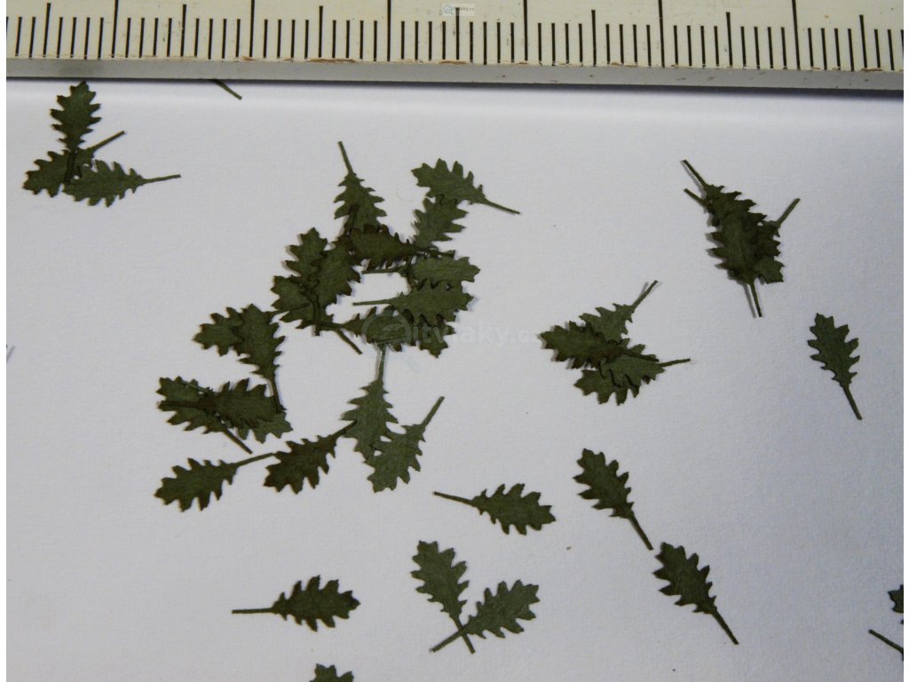 Listy - Dub červený - zelené listí 1:35. Laserem řezané jemné listy z papíru.