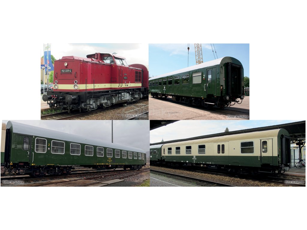 - zahrnuje lokomotivu BR 112 a tři různé typy historických vozů