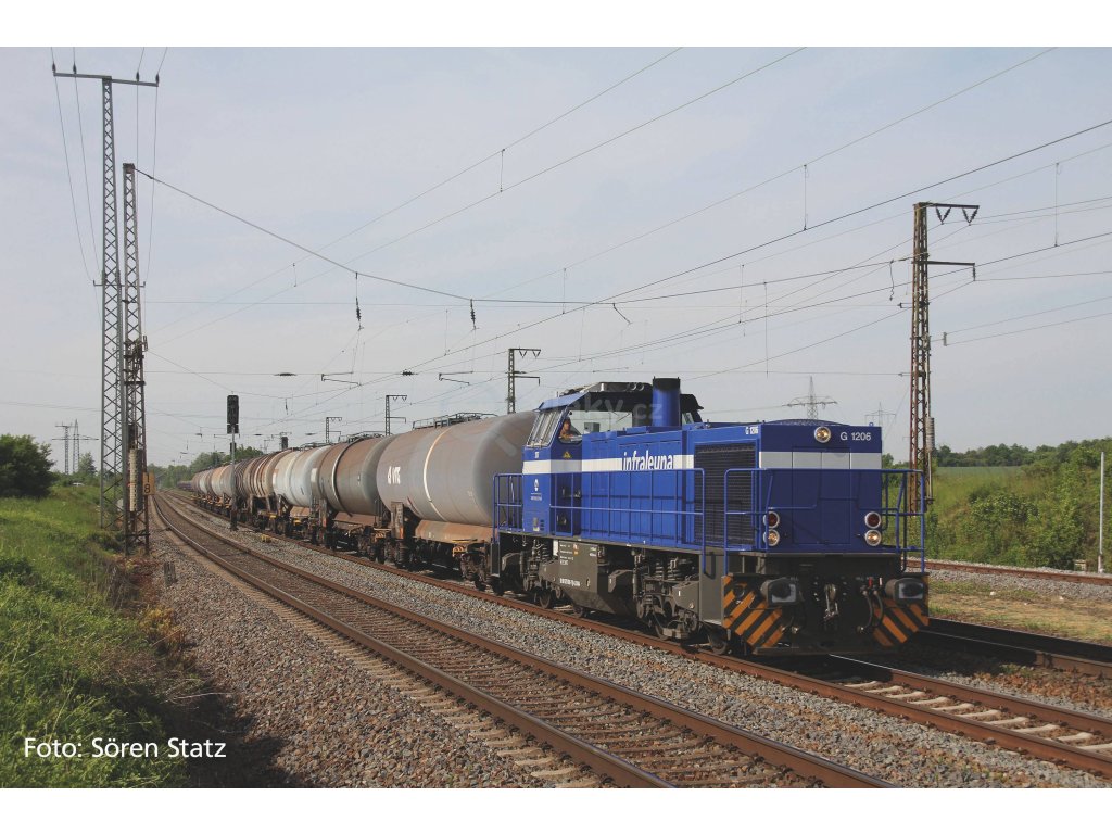 Jedná se o motorovou lokomotivu Infraleuna G1206 z éry VI. Model je připraven pro nekomplikovanou instalaci digitálního dekodéru a má úzká spřáhla TT!