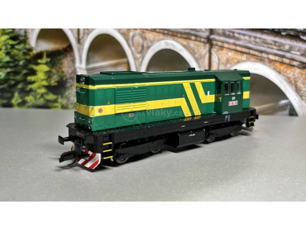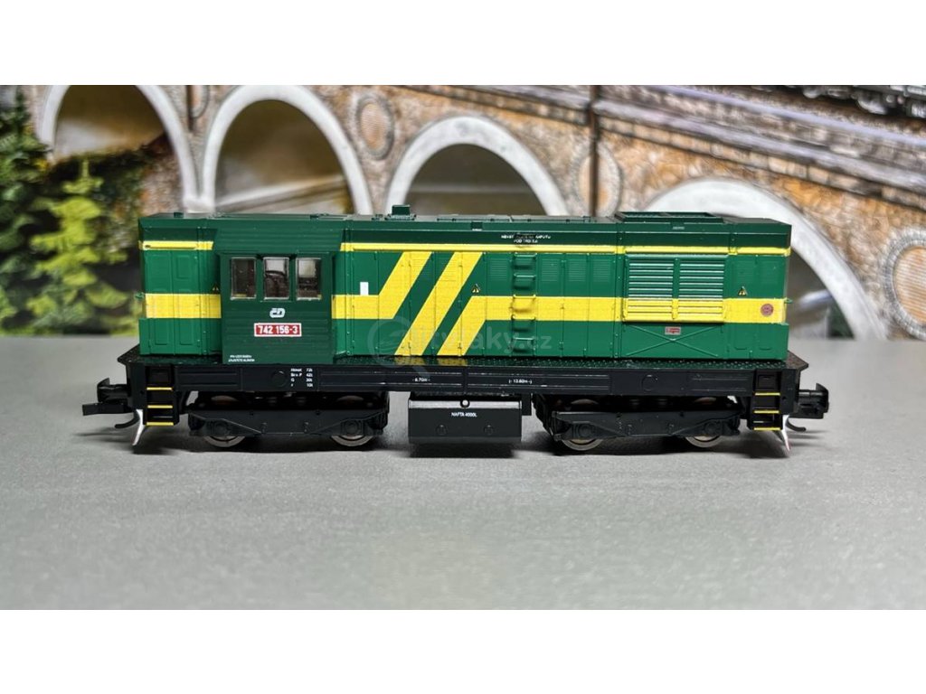 Die dieselelektrische Lokomotive Serie 740/742 (ex. T466.2). Das Modell hat die Ausstattung – Motor mit Reibrad, umschaltbare Erleuchtungen gemäß Fahrrichtung, separater schaltbarer Reflektor (nur Digital), Möglichkeit der Wahl abgeschiedenem Einschalten des Signals und Kabinenbeleuchtung. Die Lokomotive hat also die Schnittstelle Next18S. Die Accessoires werden zugepackt.