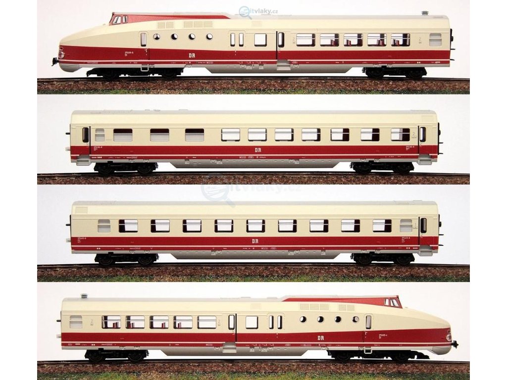 | Předloha : Na lipskému jarnímu veletrhu v roce 1963 byl představen prototyp jednotky VT 18.16 z VEB Waggonbau Görlitz. Do roku 1968 bylo vyrobeno celkem sedm 4-dílných jednotek, dva rezervní motorové vozy a šest dalších středních dílů, aby mohly být jednotky prodlouženy na 5-6 dílné. Jednotky byly do roku 1985 nasazovány na mezinárodních trasách, např. jako ,,Vindobona,, z Berlína do Vídně, jako ,,Berlinaren,, z Berlína do Malmö nebo jako ,,Karlex,, z Berlína do Karlových Varů. Jezdily také na vnitrostátních linkách. |