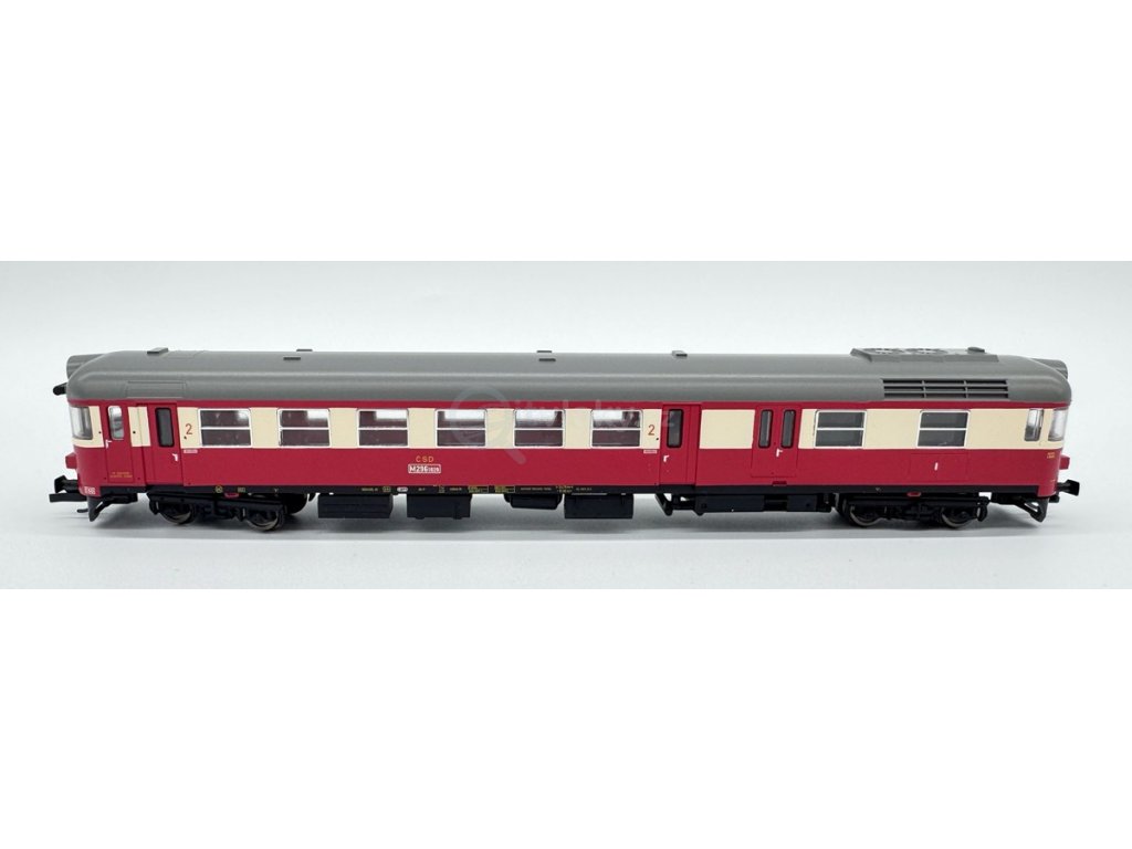 Set motorového vozu řady M296.1 pro vnitrostátní provoz 80. léta + 2x vozy (Aam a BRam) Model je vybaven rozhraním Plux16, motor se setrvačníkem, řízené osvětlení interiéru, osvětlení červená/bílá. Vozy vybaveny osvětlením. Do páru se setem M292 + Aam + Bam, odlišný odstín červené než u série Vindobon před 2 roky..