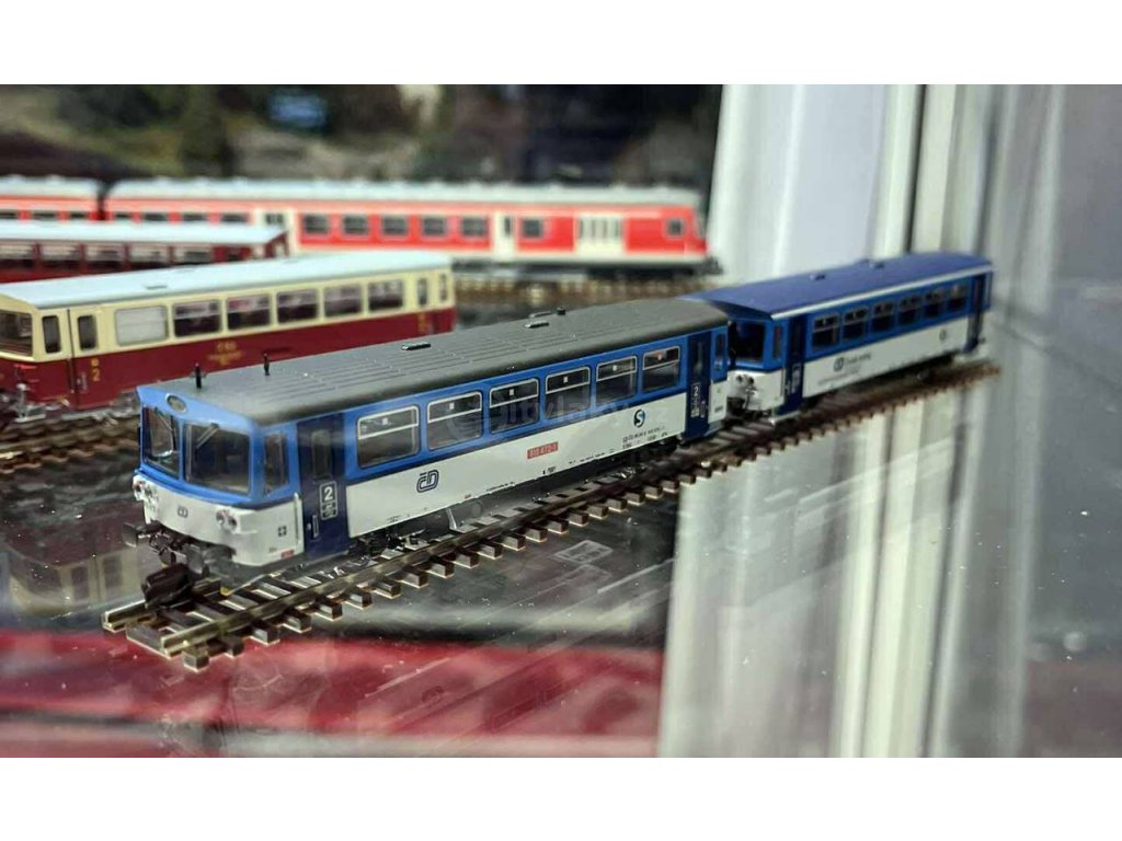 Motorový vůz 810 xxx Českých státních drah s vlečkou, typ BDtax.