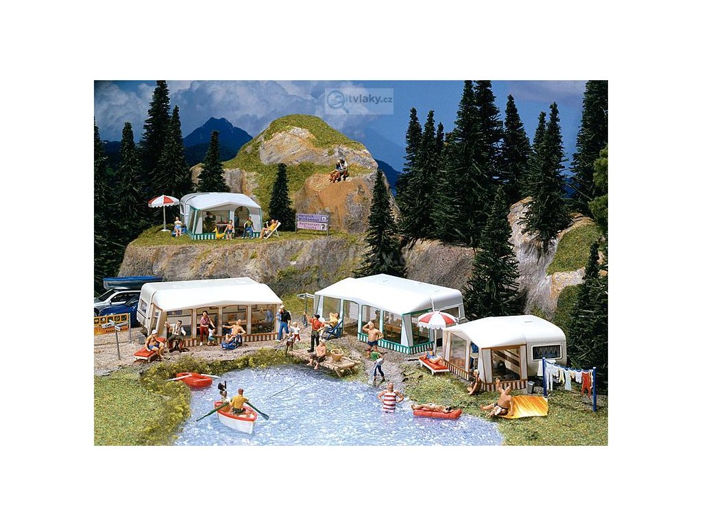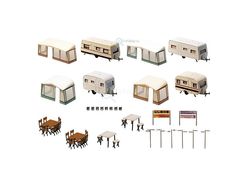 Skládá se ze 4 karavanů s markýzami v různých barvách a sadami kempinkových stolů.