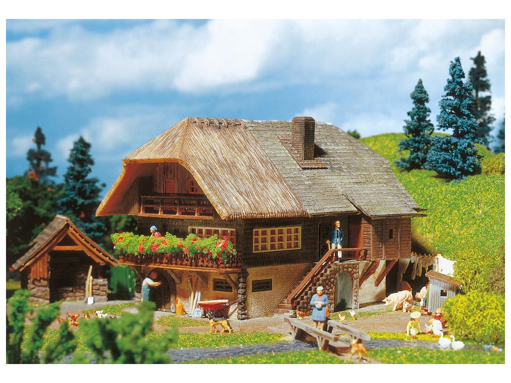 Máte chuť na dotek Černého lesa? Tento statek ve svém typickém stylu je skutečným poutačem! Díky zdobeným dekoracím, částečně doškové střeše a malému kamennému schodišti ke vchodu vyzařuje jedinečné kouzlo. Dva kryté dřevěné balkony v přední části dodávají modelu zvláštní nádech. Volně stojící cihlová pekárna a k ní odpovídající studniční koryto také vnášejí do rozvržení modelu nádech venkovské idyly.