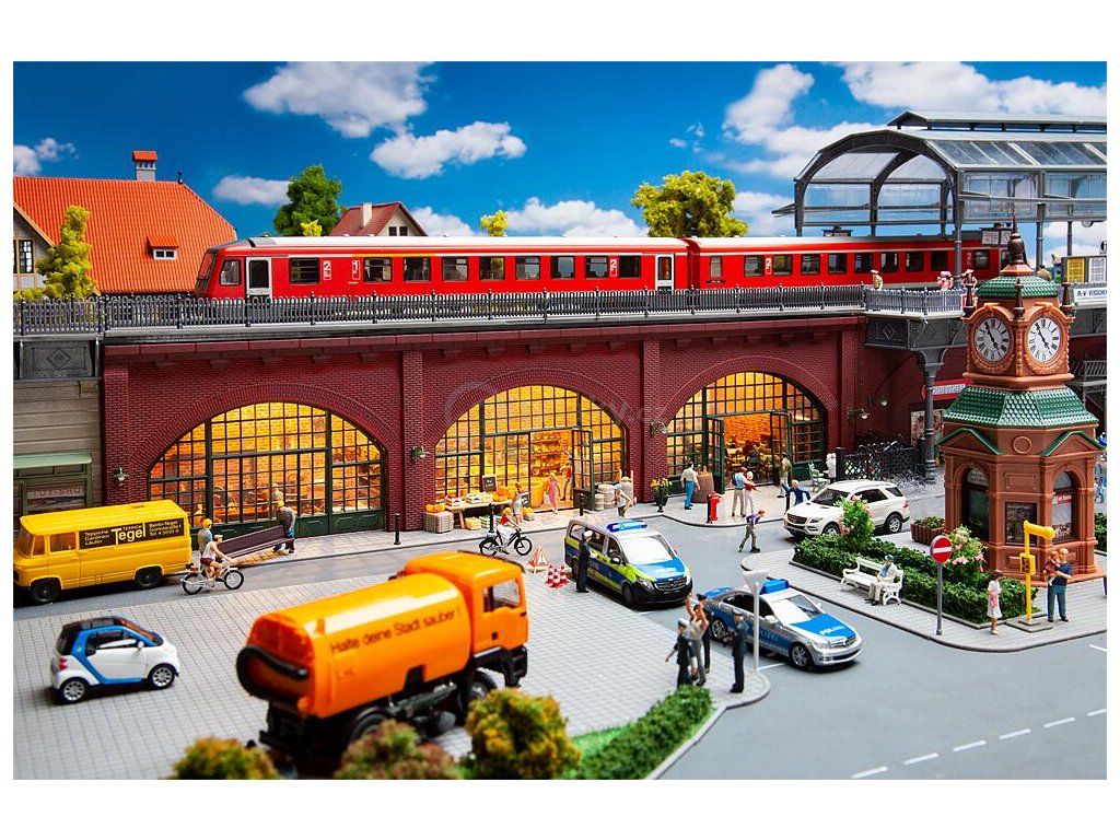 H0 - Nadzemní dráha, arkády s obchody a dekoracemi , S-Bahn / FALLER 120571