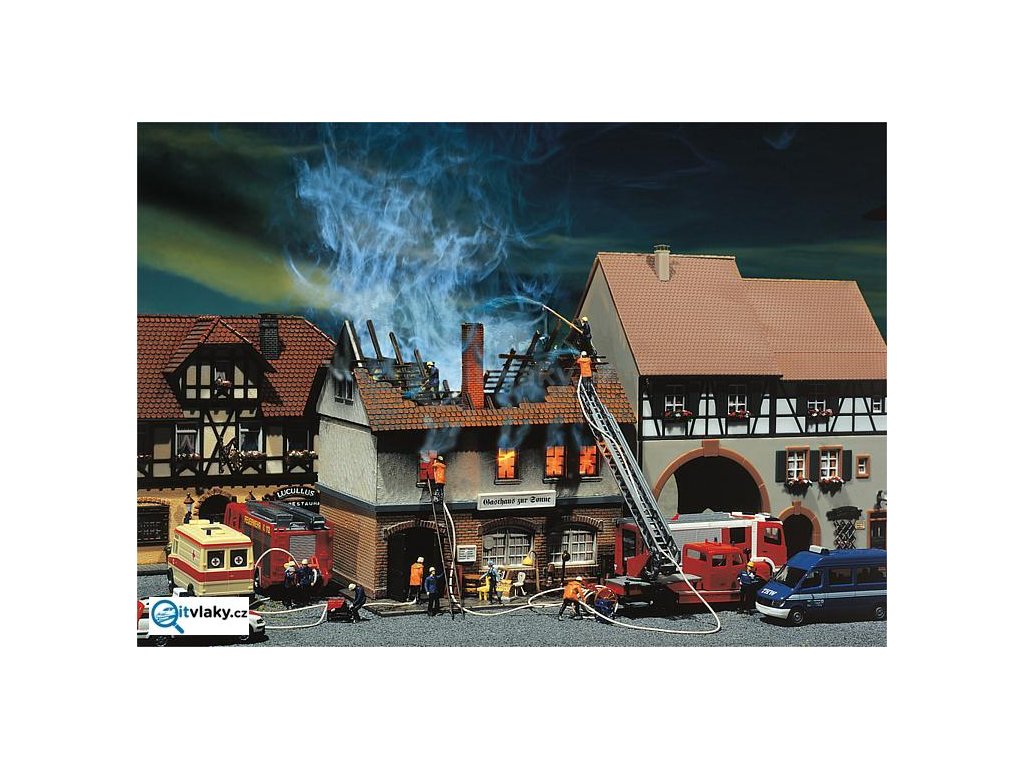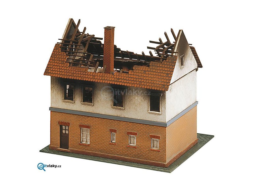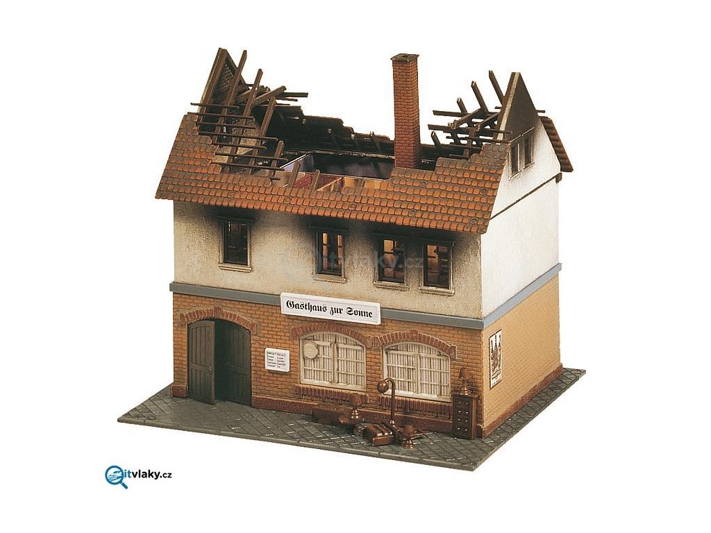 Vyhořelý, sazemi zčernalý hostinec. Bez generátoru kouře, bez zábleskového světla. Lze dovybavit sadou generátoru kouře (položka 180690, 16 V, střídavý proud) a minisvětelným efektem blikání ohně (položka 180695, 16 V, střídavý proud).
