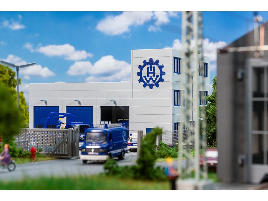 THW je k dispozici v nouzových situacích a při katastrofách již 75 let. Nyní může být vaše dioráma vybaveno i novou halou Agentury pro technickou pomoc. Tato hala poskytuje prostor pro všechny důležité stroje a vozidla, které jsou v krizových situacích nepostradatelné. S tímto autentickým modelem, který připomíná 75. výročí THW, je i miniaturní svět bezpečně chráněn před katastrofami! Budova THW je vhodná pro průjezd vozidly Car System.